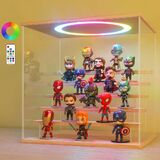 Lanscoery RGB Acrylic Display Case - 3 Tier Black Showcase مع LED تغيير اللون ، مربع منظم مقاوم للغبار لـ Funko Pop ، شخصيات صغيرة ، مقتنيات ، 11.8x6.3x9.4inch