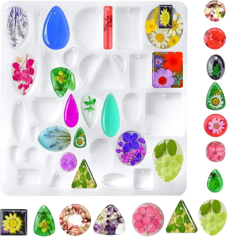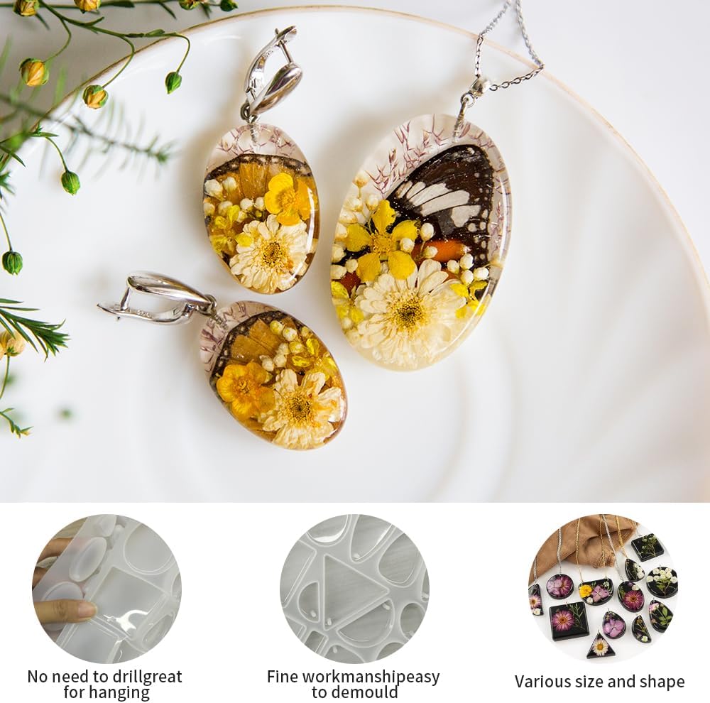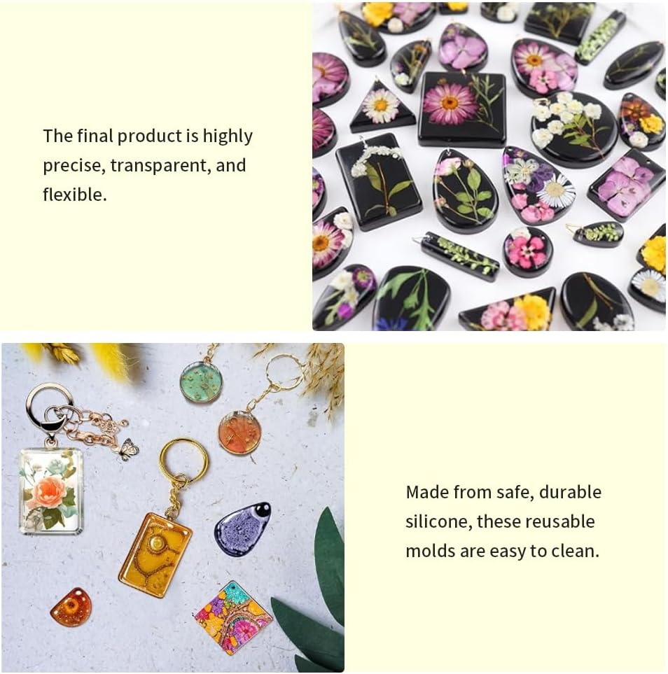 Our resin jewelry-making kit is made of silicone material, which is soft, flexible and not easy to tear. The resin molds silicone are durable and has a smooth interior, so the finished product can easily fall off the mold. Non-stick and easy to clean. The resin jewelry molds are an ideal choice for DIY handicrafts