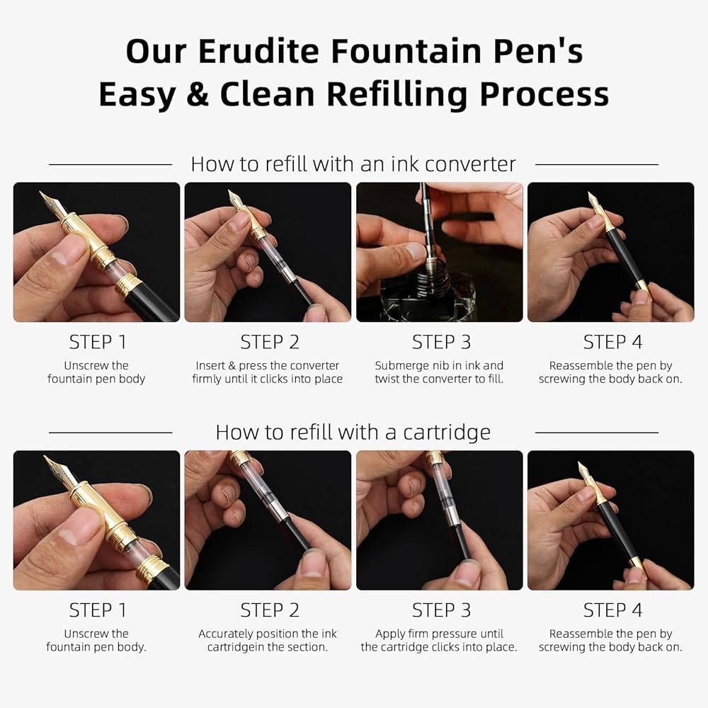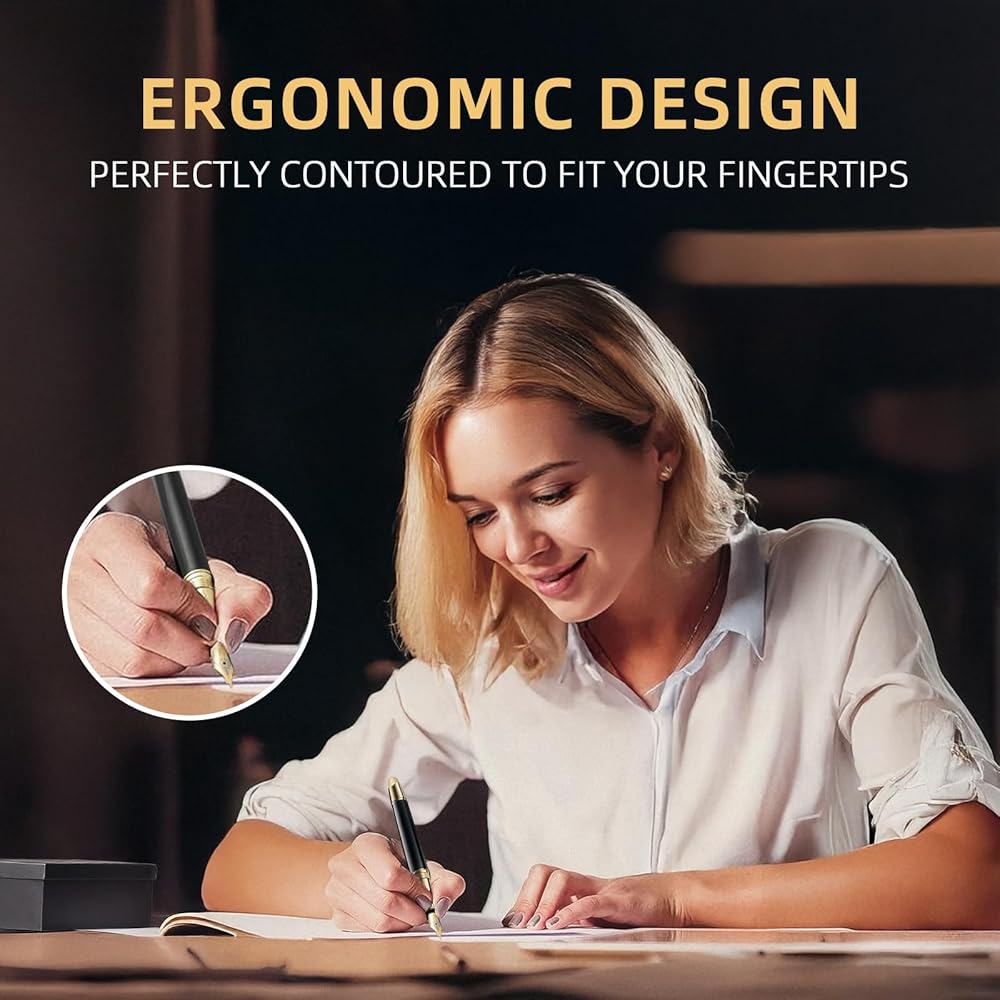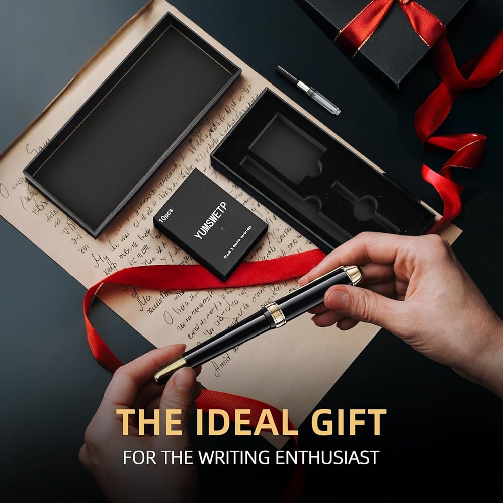 مجموعة هدايا قلم النافورة الفاخرة للكتابة ناعمًا ، ناعمًا ، تشمل محول الحبر القابل لإعادة التعبئة و 10 خراطيش حبر سوداء 3.4 مم معد