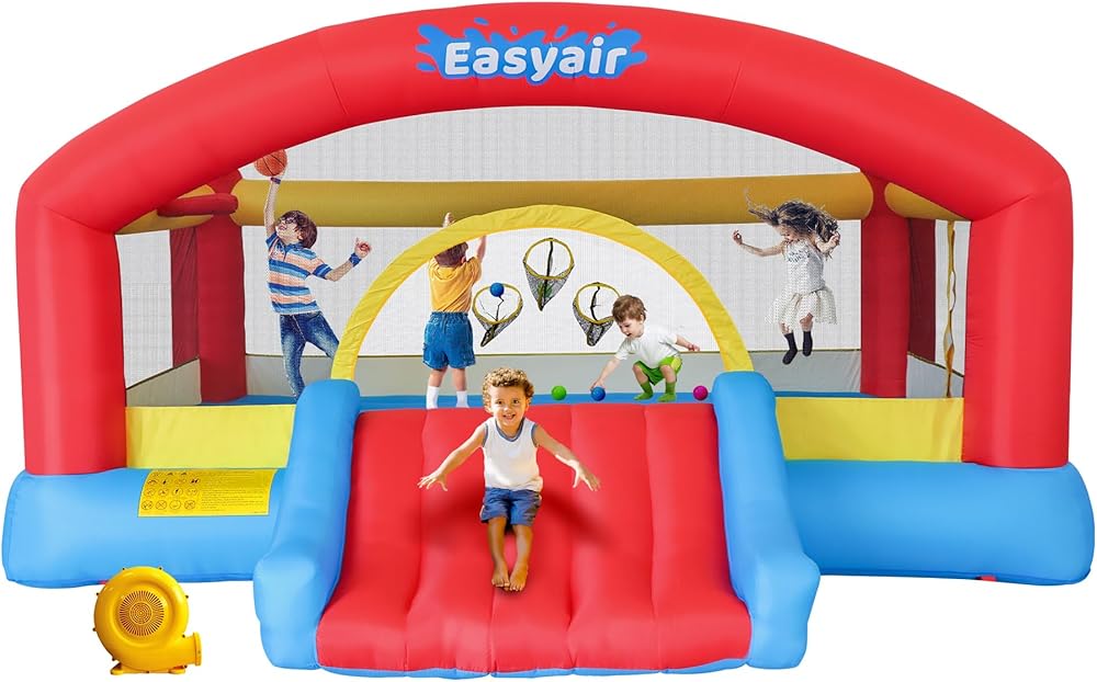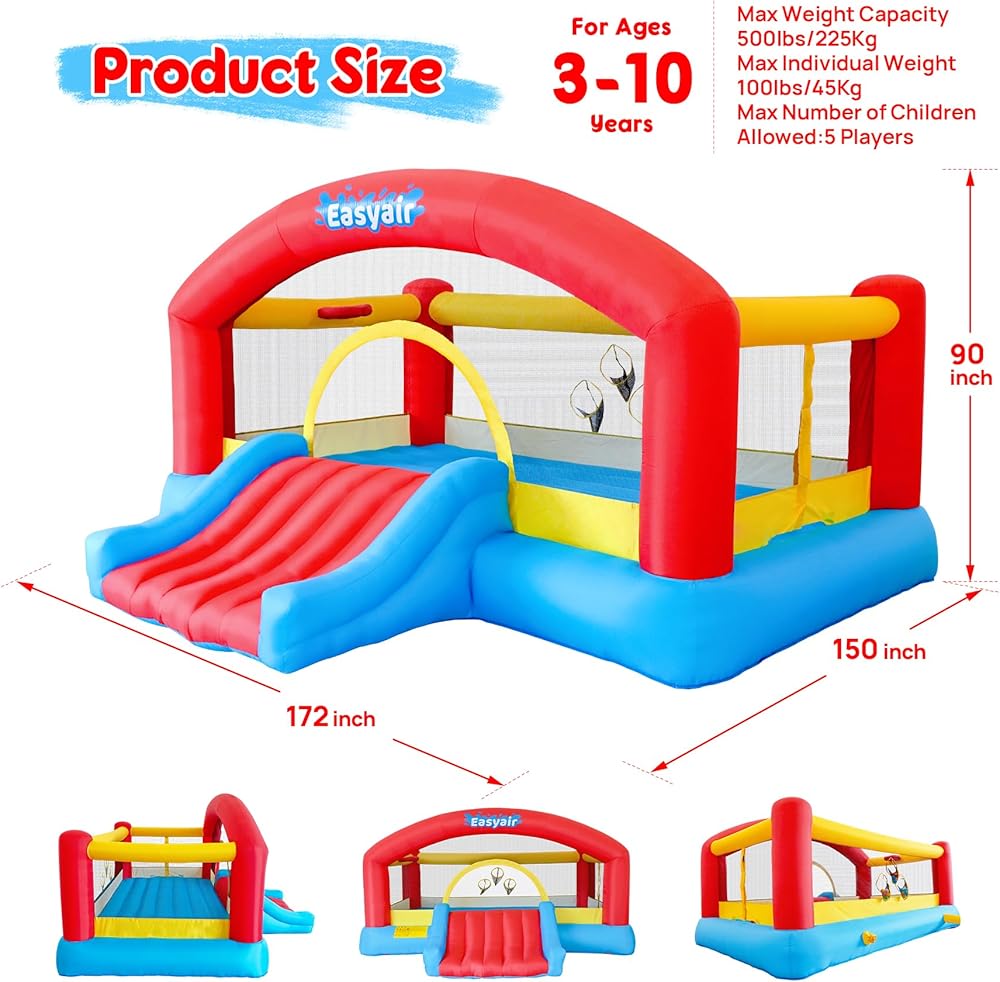 Playhouse for Kids Outdoor: يتكون هذا المنزل المرتفع القابل للنفخ مع الشريحة من الأقمشة القوية. تبلغ 123 "L x 110" W × 87 "H. وهو مناسب لما يصل إلى 3 أطفال تتراوح أعمارهم بين 3 و 10 سنوات (مع أقصى وزن قدره 100 رطل لكل طفل). يساعد هذا المنتج أيضًا على تطوير مهاراتهم الحركية