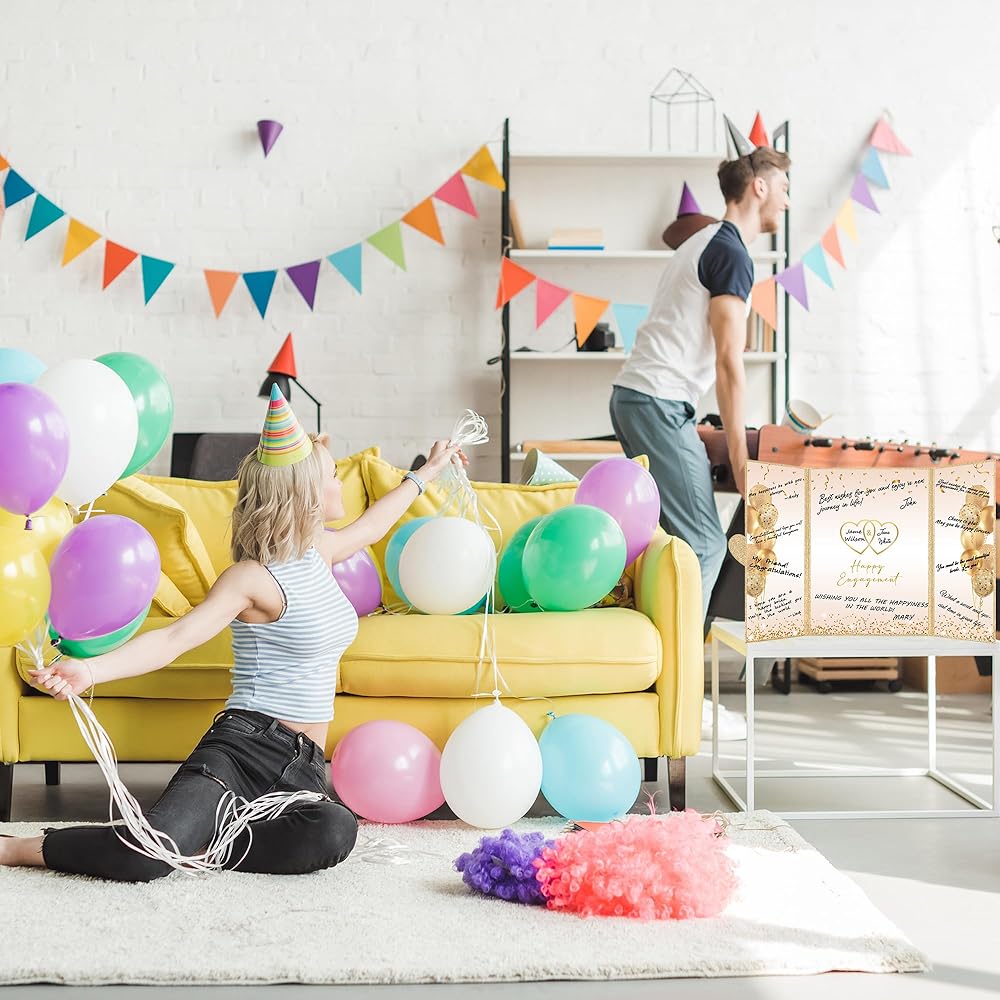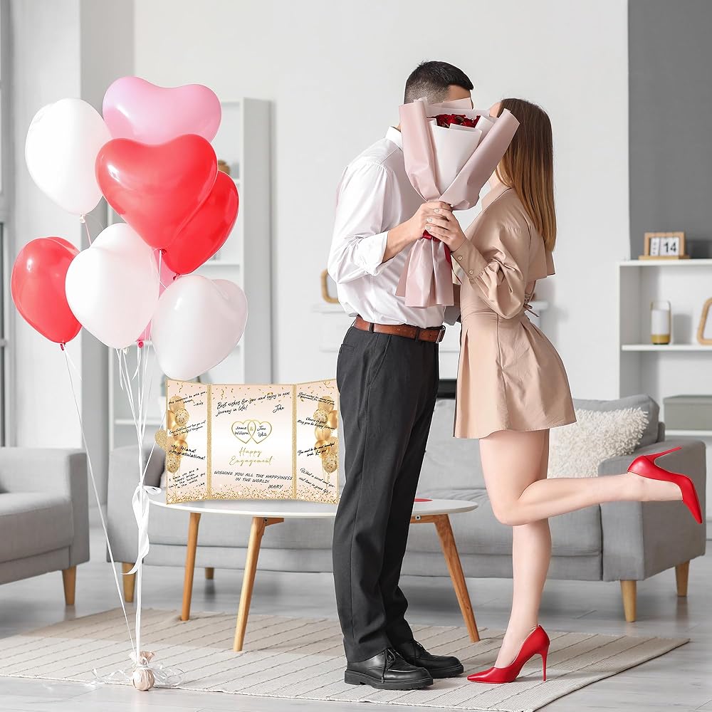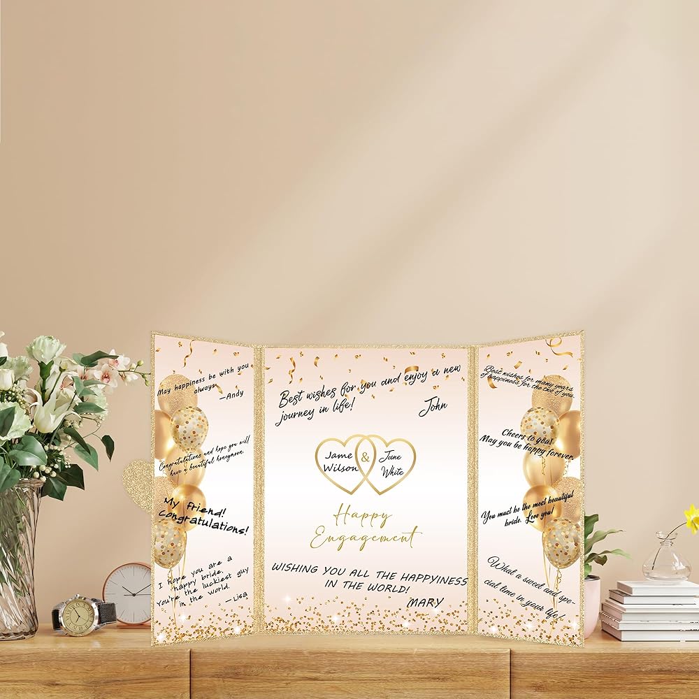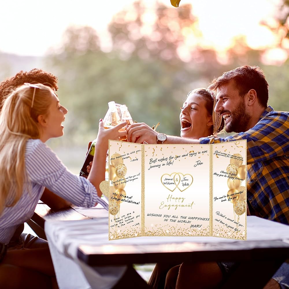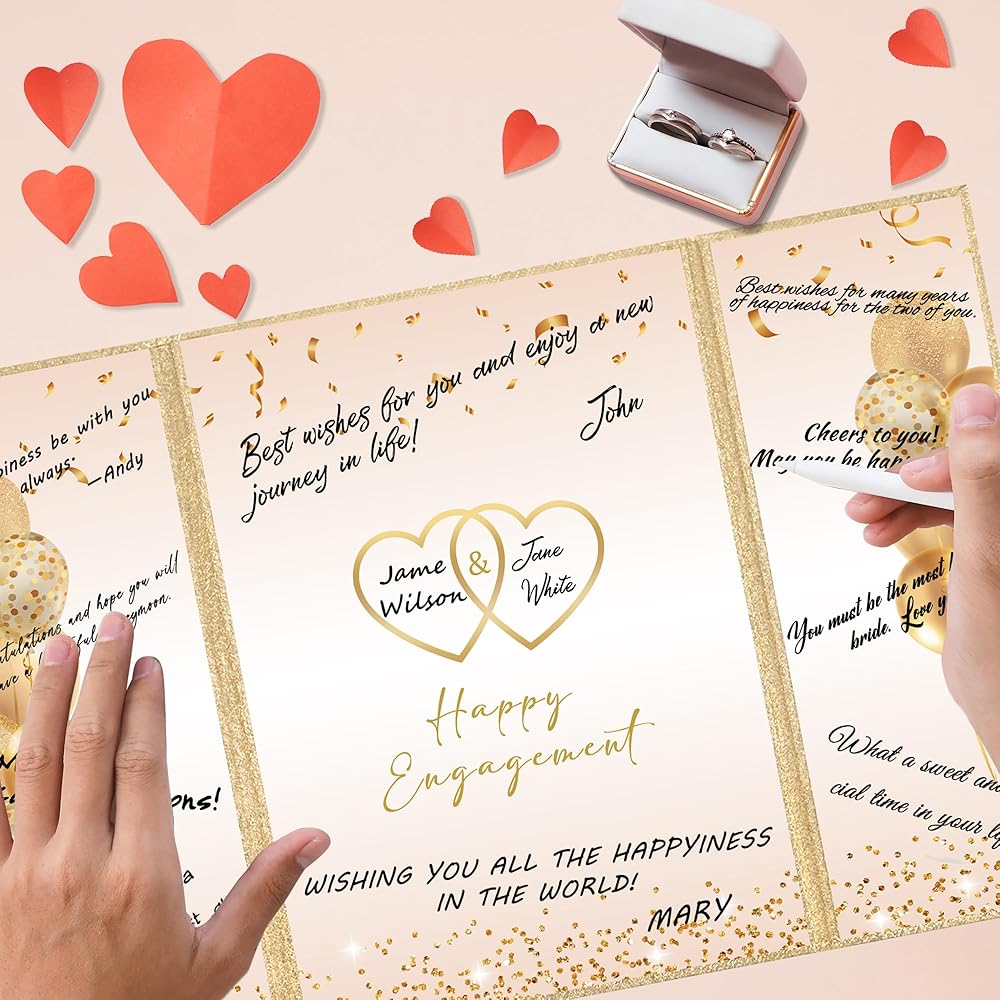 • 【تطبيق واسع】 - تزيين منزلك وحفلتك باستخدام بطاقة ملصق شهادة المشاركة الذهبية سيكون بمثابة نجاح كبير في حفلة الخطوبة الخاصة بك. من السهل مطابقة الديكور لحفل خطوبة الزفاف مع لوازم الحفلات الأخرى ، مما يخلق فيبيًا دافئًا لحفلتك. مثالي كزخرفة لحفلات المشاركة لك ولعائلتك أو أصدقائك أو الأزواج. يمكن عرض دفتر ضيوف الذهب السعيد الذهب الأسود في أي مكان في المنزل أو المكتب كتذكير عزيز باليوم الخاص.