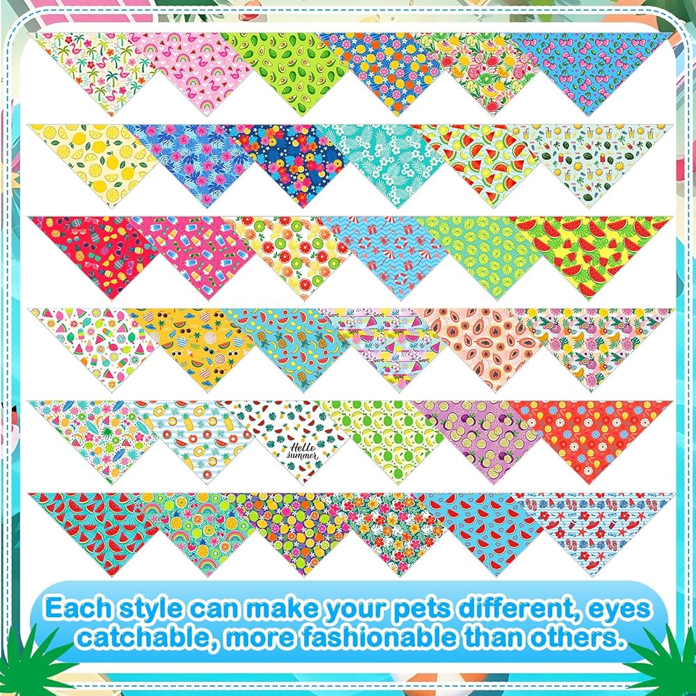 Our dog bandanas are printed with a variety of summer designs on the surface, such as fruits, flamingo, palm leaves and other elements, full of festive atmosphere, the ideal way to dress up your pet.