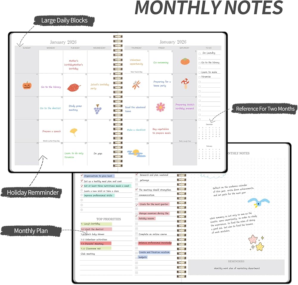 مساحة كافية للكتابة: كبيرة الحجم ، 7.3 × 9.5 بوصة ، مناسبة للمكاتب والمنازل ، أو التي يتم حملها في حقيبة ، بما في ذلك الأهداف الشهرية والأولويات والمهام والملاحظات والتذكير ، لتلبية جميع احتياجاتك