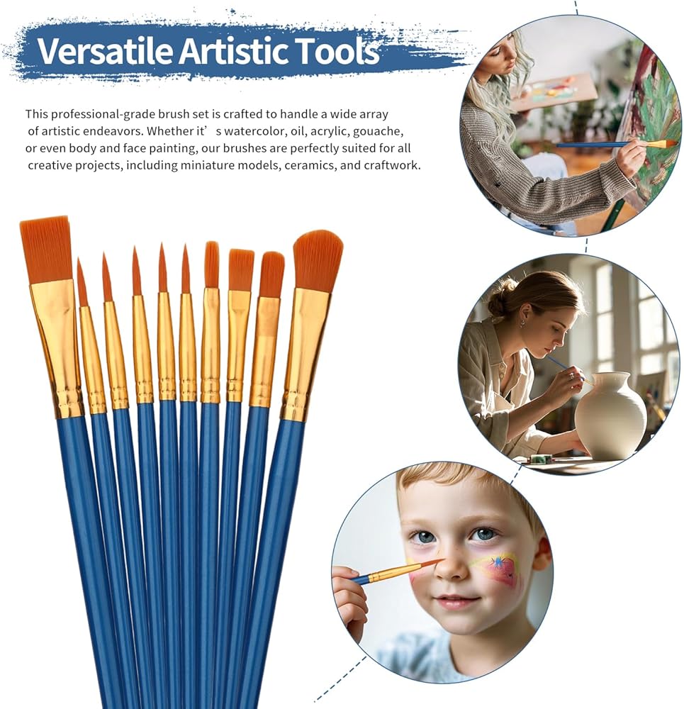 【Versatile Artistic Tools】: This professional-grade brush set is crafted to handle a wide array of artistic endeavors. Whether it's watercolor, oil, acrylic, gouache, or even body and face painting, our brushes are perfectly suited for all creative projects, including miniature models, ceramics, and craftwork.