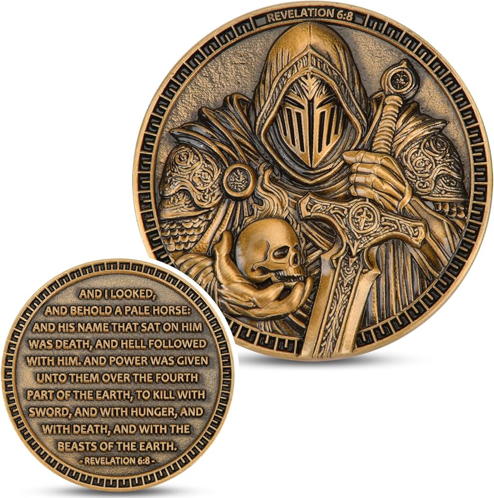 Revelation 6:8 Challenge Coin - Exquisite Knight and Death Design,Symbolizing Faith and Courage, Ideal for Christian Gift (Single Coin)
