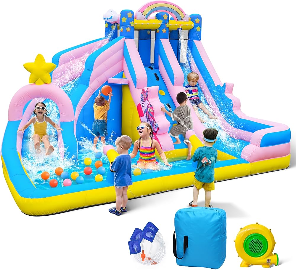 • شريحة المياه الصيفية: قم بإنشاء حديقة مائية فورية مع منزل ترتد المياه! دع أطفالك يغمرون أنفسهم في ساعات من الإثارة في الفناء الخلفي - سواء استضافت حفلات أعياد الميلاد أو جمع الجيران أو ضرب حرارة الصيف. شاهدهم رش ، تسلق ، شريحة ، وضحك