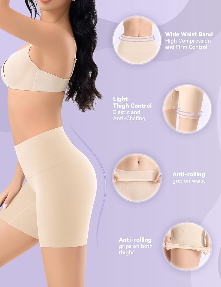 ღ مادة مختارة - فائقة المرونة، ومسامية، وناعمة، وصديقة للبشرة. صفعات مطاطية تحت الفستان لتنعيم بطنك. خياطة بدون خياطة لتجنب VPL (خطوط اللباس الداخلي المرئية).
