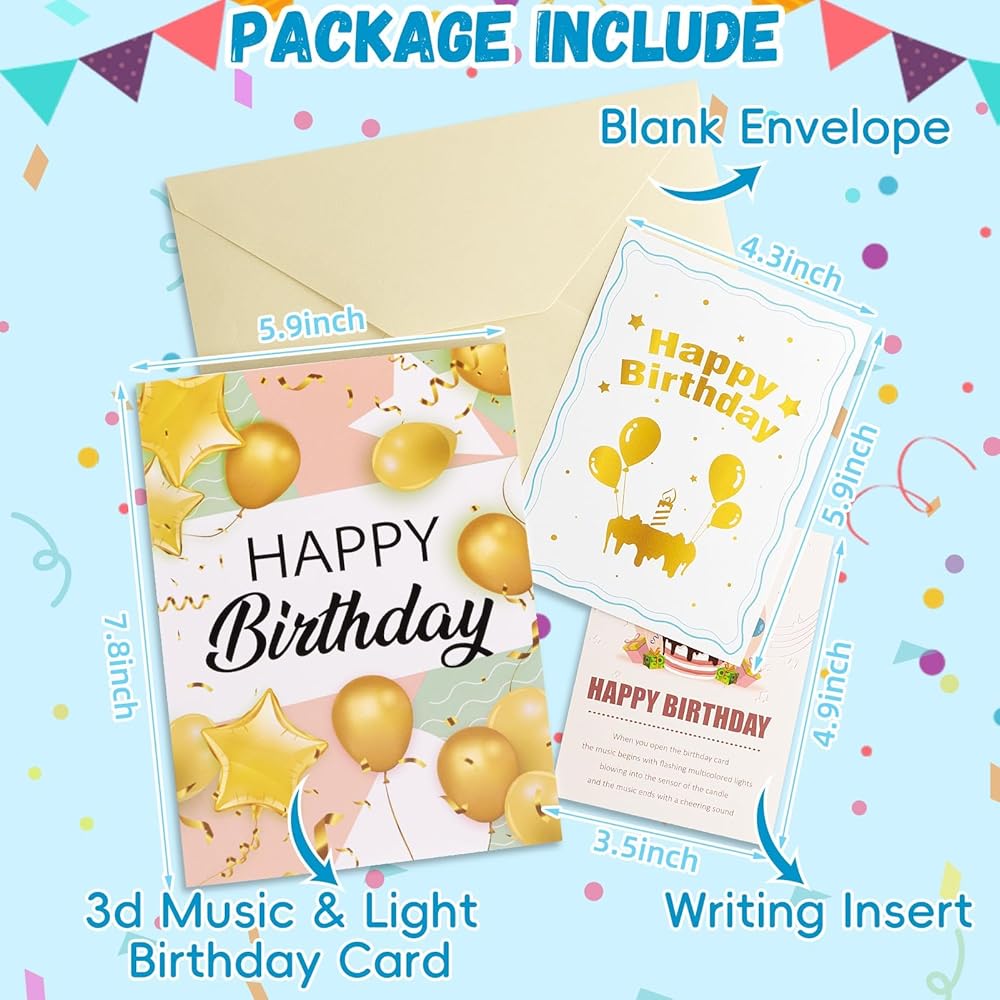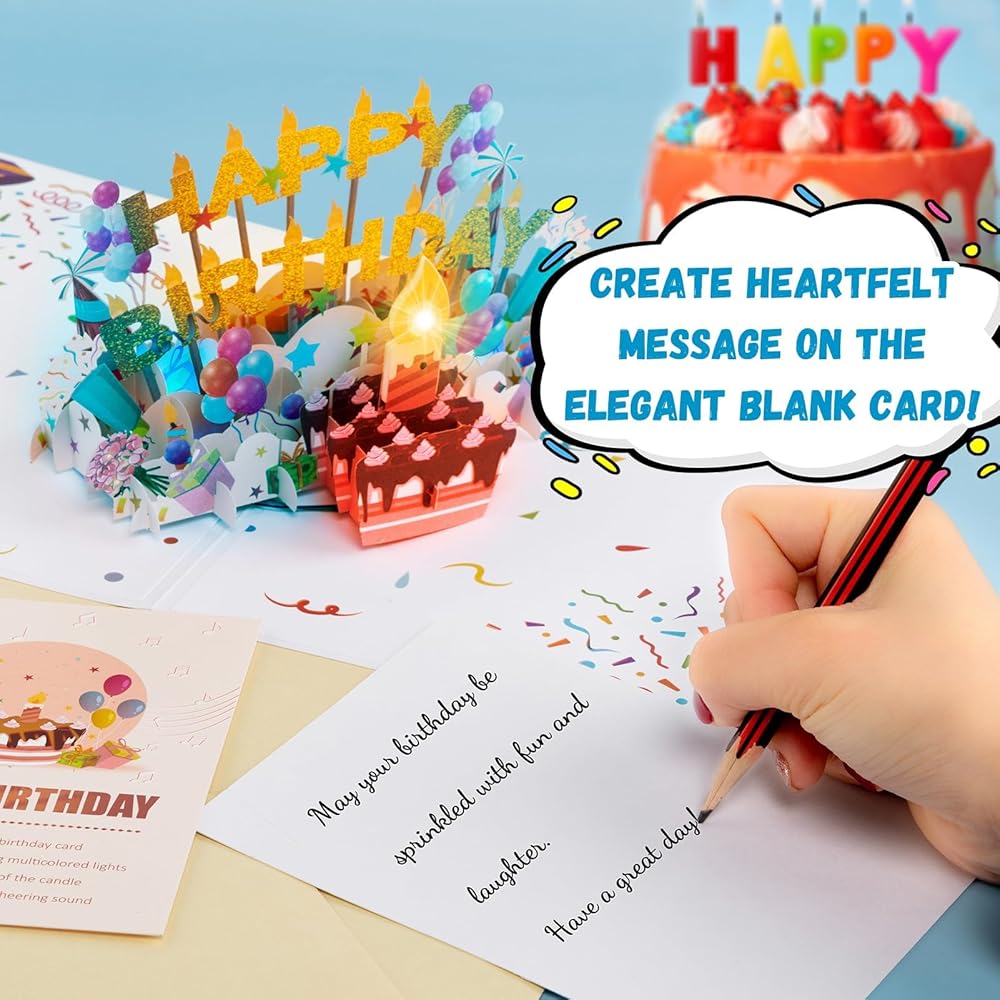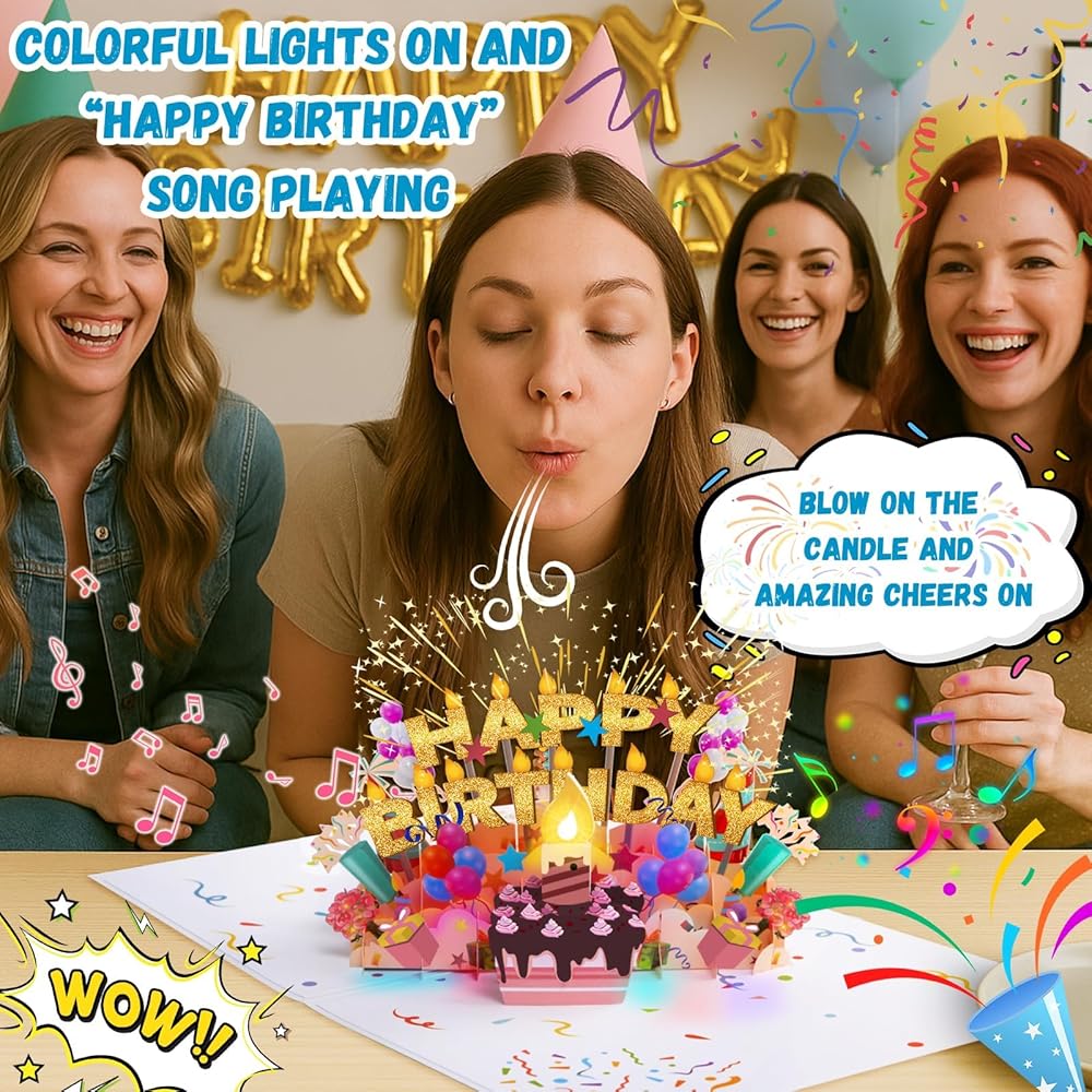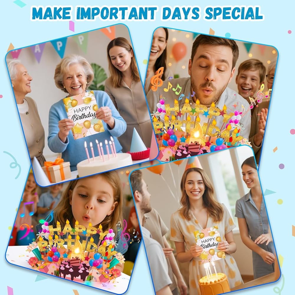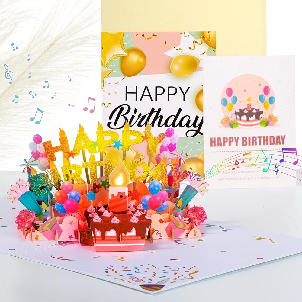 Lupow 3D pop up appiral birthday with lights وشمعة LED LED قابلة للانفجار - غناء تفاعلي للبطاقات البريدية السعيد بطاقات المعايدة.