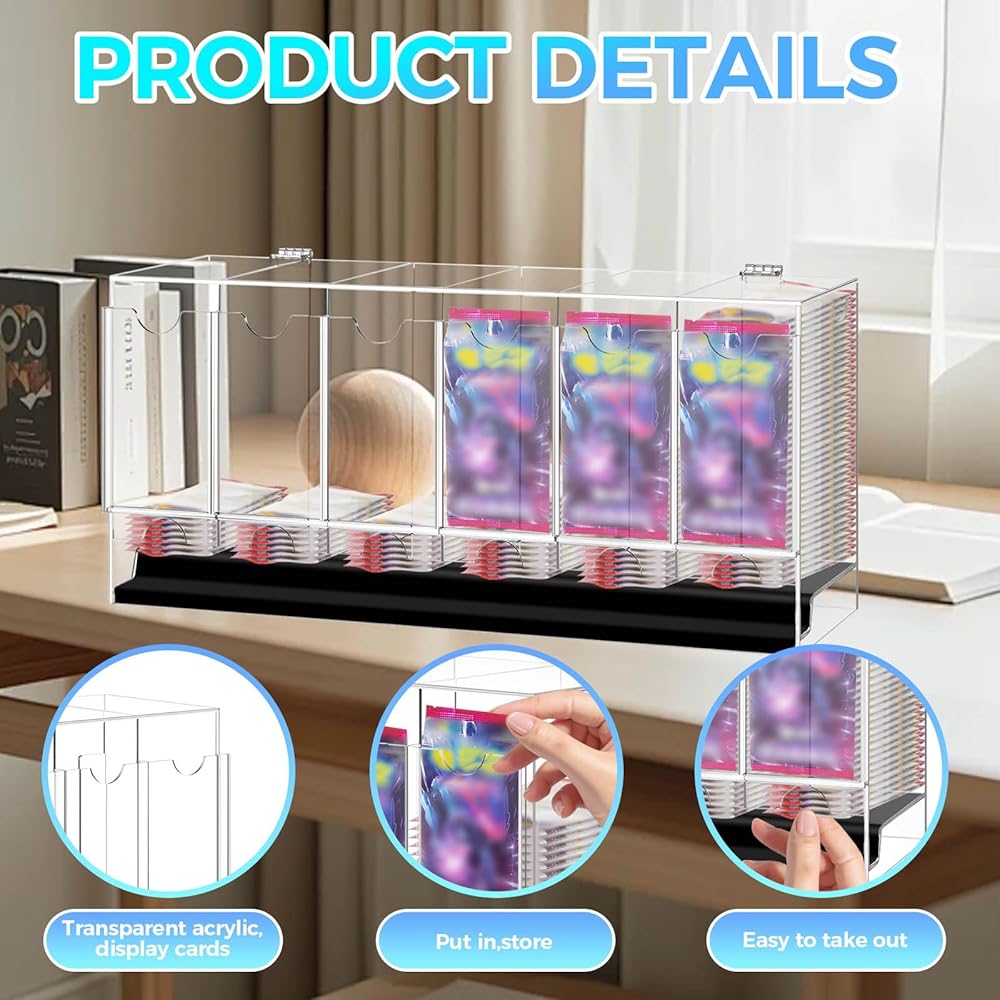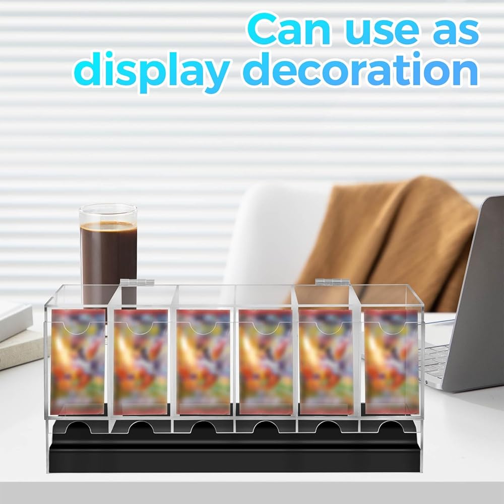 حماية الأشعة فوق البنفسجية الأكريليك: يتكون موزع البطاقة المكون من ستة فتحات من مواد أكريليك شفافة عالية الجودة ، مما يوفر عرضًا واضحًا وغير معتمد لشاشة البطاقة. تمنع طبقة حماية الأشعة فوق البنفسجية المدمجة بشكل فعال الضوء الضار ، مما يمنع بطاقاتك الثمينة (مثل بطاقات النجوم النادرة ، والبطاقات القابلة للتجميع عالية القيمة) من التلاشي أو التغير ، وحماية قيمة التجميع لفترة طويلة.