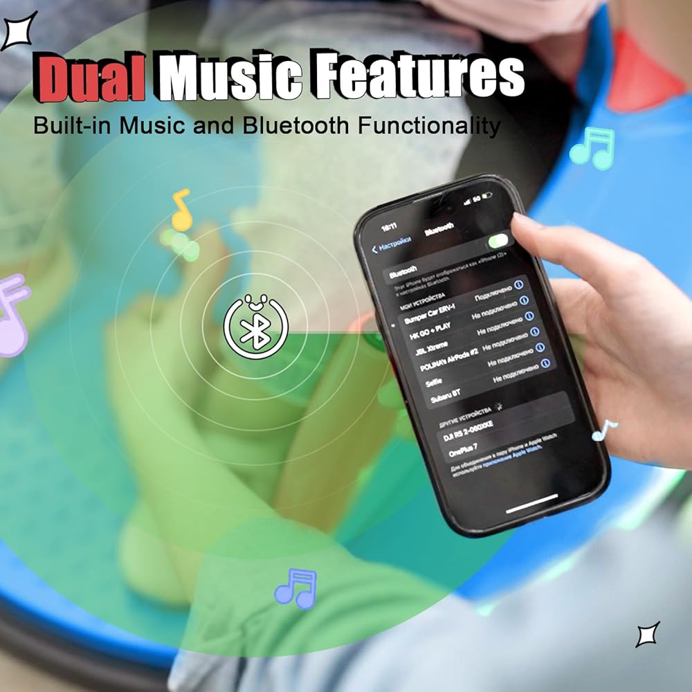 【وظيفة موسيقى Bluetooth】 تم تصميم سيارتنا بعناية مع وضع الترفيه العائلي في الاعتبار ، وتتميز بنظام صوت مدمج يتم تحميله مسبقًا بمجموعة مختارة من خمسة نغمات أطفال مبهجة ، مثالية للحفاظ على المشاركة الصغار والترفيه أثناء ركوب الخيل. علاوة على ذلك ، تم تجهيز السيارة بالاتصال المتقدم من Bluetooth ، مما يوفر للوالدين راحة لدفق قوائم التشغيل الشخصية أو البودكاست المفضلة من هواتفهم الذكية.