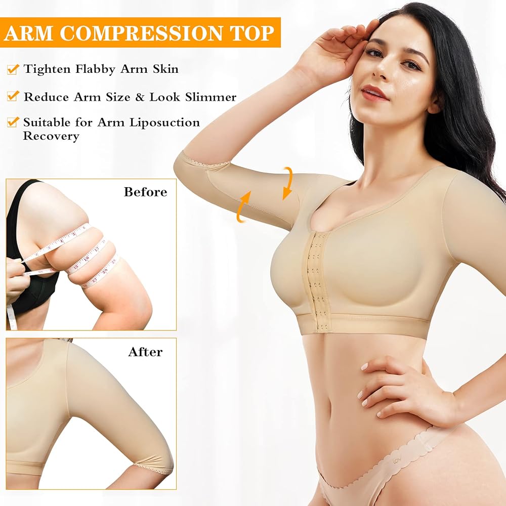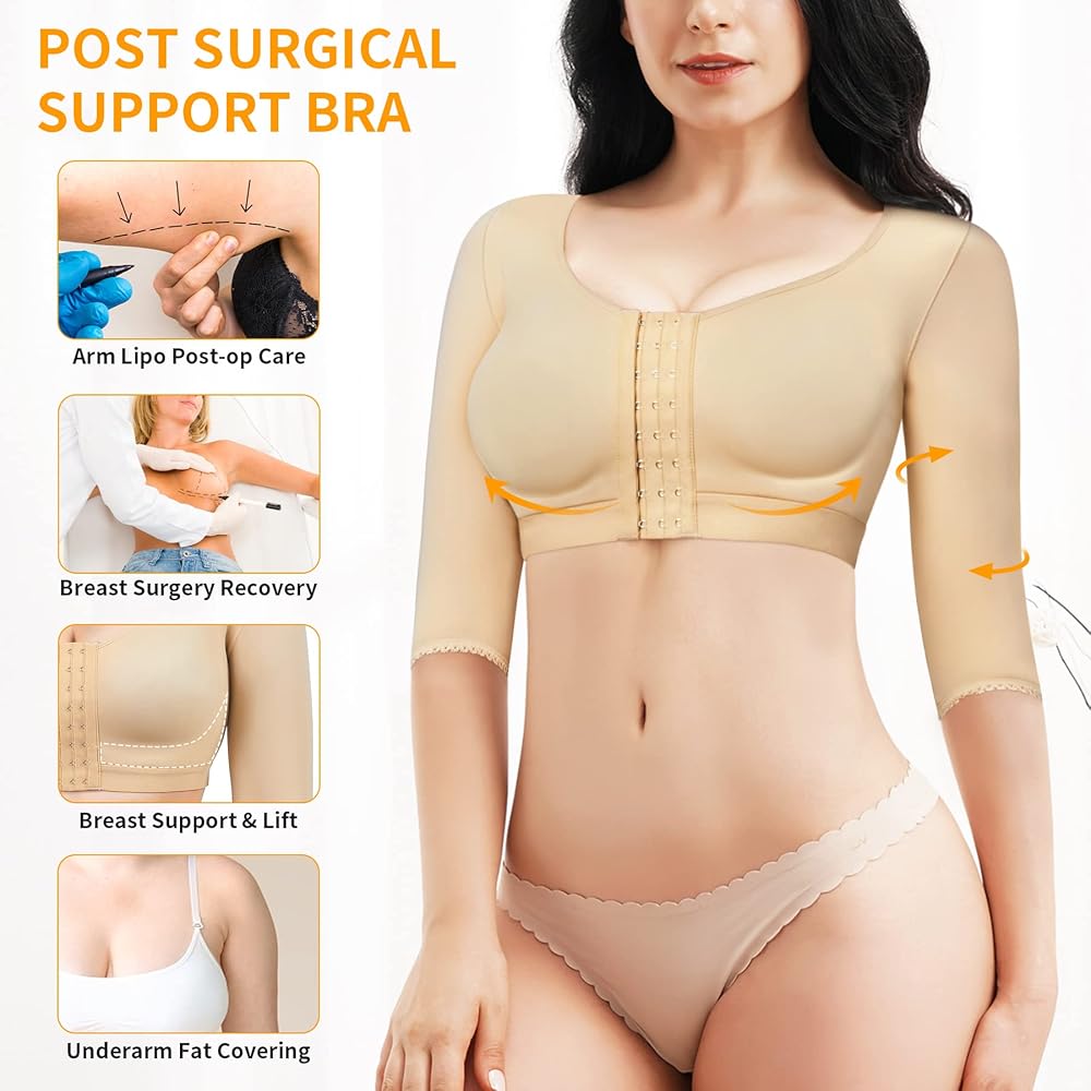 ملابس تشكيل مفيدة متعددة الوظائف: يستخدم هذا الجزء السفلي مواد فائقة الجودة، ليس فقط يمكن أن تكون حمالة صدر لتشكيل الجسم يوميًا، ولكنها مناسبة للتعافي بعد العملية لمساعدتك على استعادة جسمك الجميل والصحي. مساعد رائع لتشكيل الأذرع المترهلة، والعناية بعد عملية شفط الدهون، والأشخاص الذين يتعافون بعد جراحة الثدي.