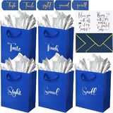 رحلة حسية مخصصة: تتضمن كل مجموعة خمسة أكياس هدايا فسيحة 10 "x8" x4 "الخمسة. تتميز كل حقيبة بكلمة رقائق ذهبية مميزة:" طعم "،" لمسة "،" رائحة "،" صوت "، أو" البصر "، بالإضافة إلى خمسة علامات هدايا مطابقة.