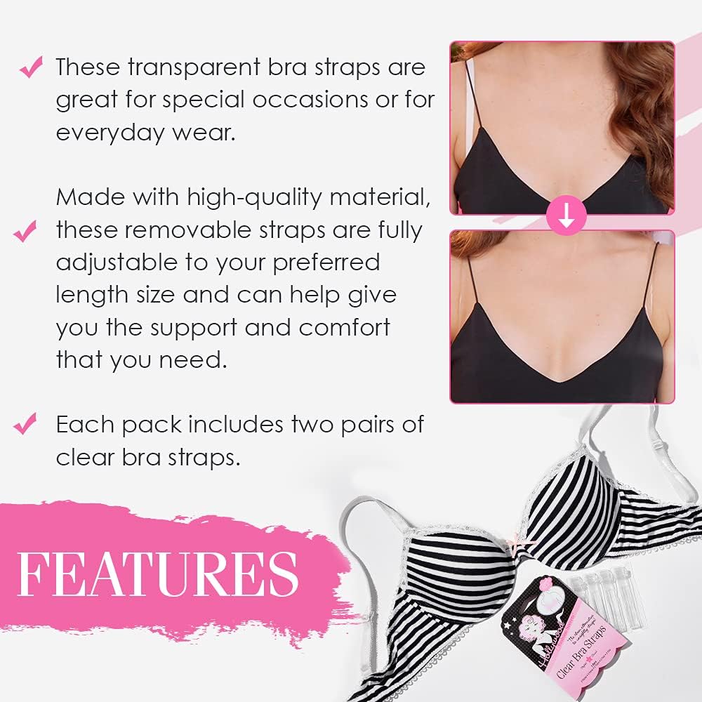 مظهر مثالي لحمالة الصدر بدون حمالات لـ OOTD: أضف مظهرًا أنيقًا وجذابًا إلى خزانة ملابسك مع أشرطة حمالة الصدر الشفافة من Hollywood Fashion Secrets. مثالية عند ارتدائك قمصان بدون أكمام، وتي شيرتات، وأرسن، وقمصان ذات أشرطة، وملابس السباحة، بالإضافة إلى ملابس السهرة. يأتي في زوجين من الأشرطة الشفافة القابلة للفصل.