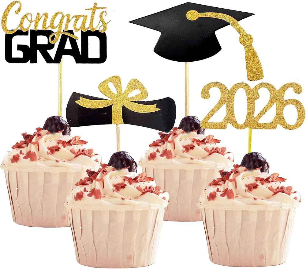 2025 Graduation Cupcake Toppers Imitation Glitter Design, No Powder Drop On The Cake, Safe Decoration On Cupcakes