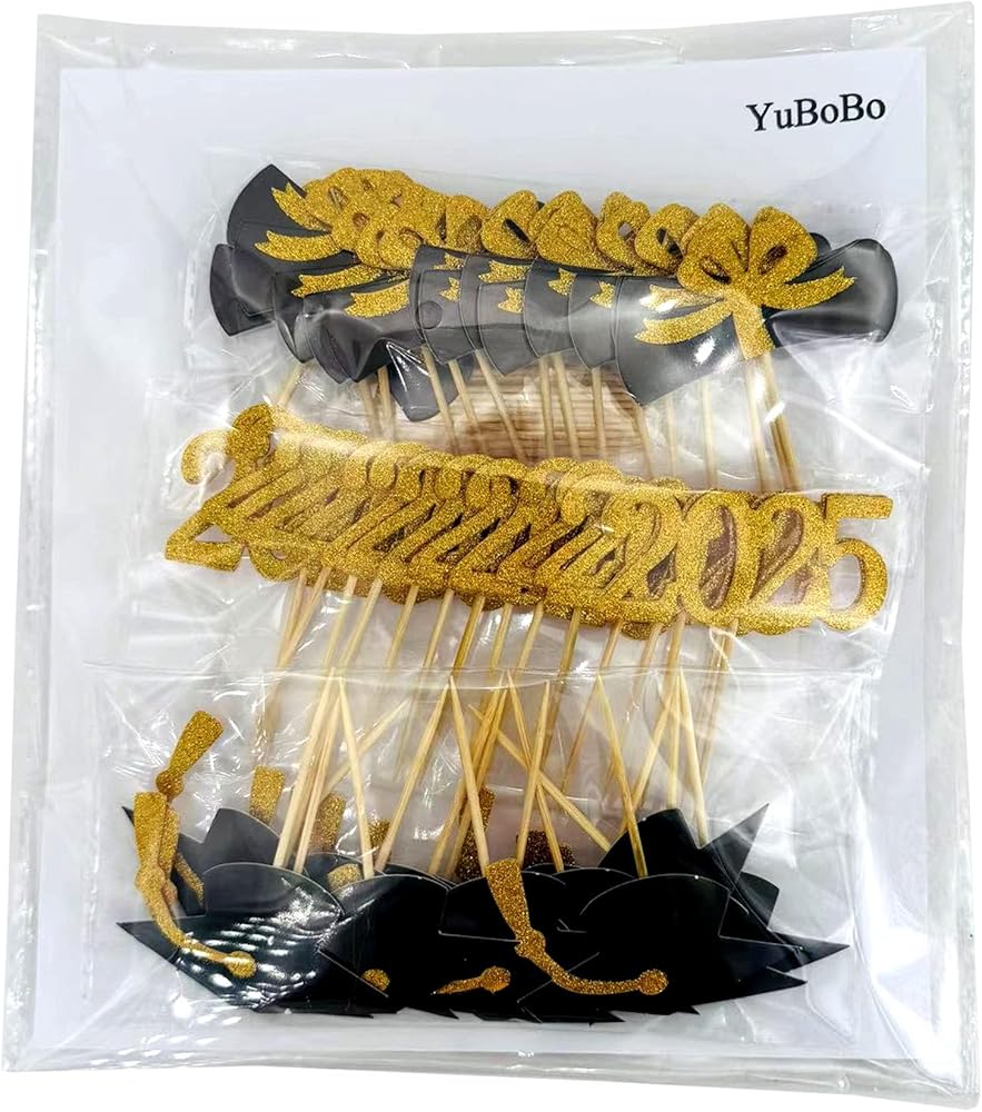 Package Include 16*Diploma Picks,16*2025 Picks,16*Graduation Cap. Totally 48 Pieces