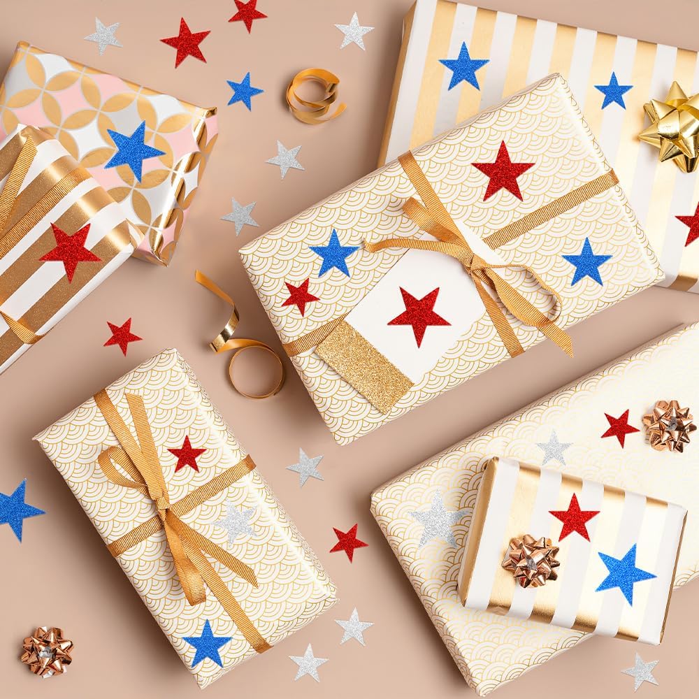 Easy to Use: These red white and blue stars stickers are easy to use, just peel off the back sticker and stick it where you want to stick it, it sticks firmly and won't fall off, no glue or other tools are needed, making them perfect for kids and adults alike to create beautiful crafts effortlessly. You can also choose a sticker as a reward after your kids finish their homework or chores