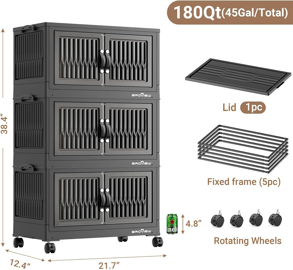 【5 دقائق من التجميع والنصائح الدافئة سهلة】 صناديق التخزين القابلة للتكديس مفتوحة الأمام فقط تستغرق 5 دقائق فقط لتجميع خزانة التخزين بأكملها. بفضل التصميم القابل للطي والقابل للتكديس ، يمكن تفكيك صناديق التخزين القابلة للتكديس Broview V8 وطيتها في أي وقت عندما لا تكون قيد الاستخدام. نصائح دافئة: حاليًا فقط 120QT الأسود يأتي مع غطاء متعدد ، حاجة أخرى إلى شراؤها بشكل منفصل.