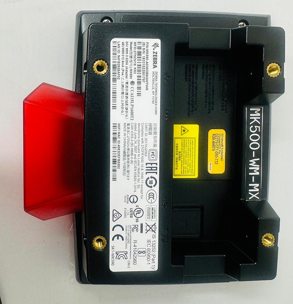 The ZEBRA MK590 KIOSK IMAGER KIT represents a complete solution for modern retail environments. This versatile micro kiosk system comes equipped with everything needed for immediate deployment, including the main MK590 unit, power adapters, and a professional wall mounting kit. The sleek, black design features a built-in display screen and intuitive interface, making it perfect for customer self-service applications. This powerful data processing tool streamlines operations by enabling quick barcode scanning and information access. The kit's comprehensive nature ensures smooth installation and integration into existing retail infrastructure, while the durable construction promises reliable performance in high-traffic areas. Whether for price checking, inventory lookup, or customer information access, this kiosk system delivers enhanced functionality for both staff and customers, making it an invaluable addition to any retail or commercial space.