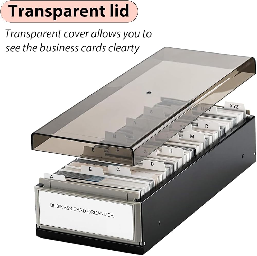 EXCELLENT DESIGN: The excellent business card organizer features front and back expandable design, the transparent lid can be opened easily for you to access your business cards at any time; the whole box can be disassembled easily for easy cleaning.