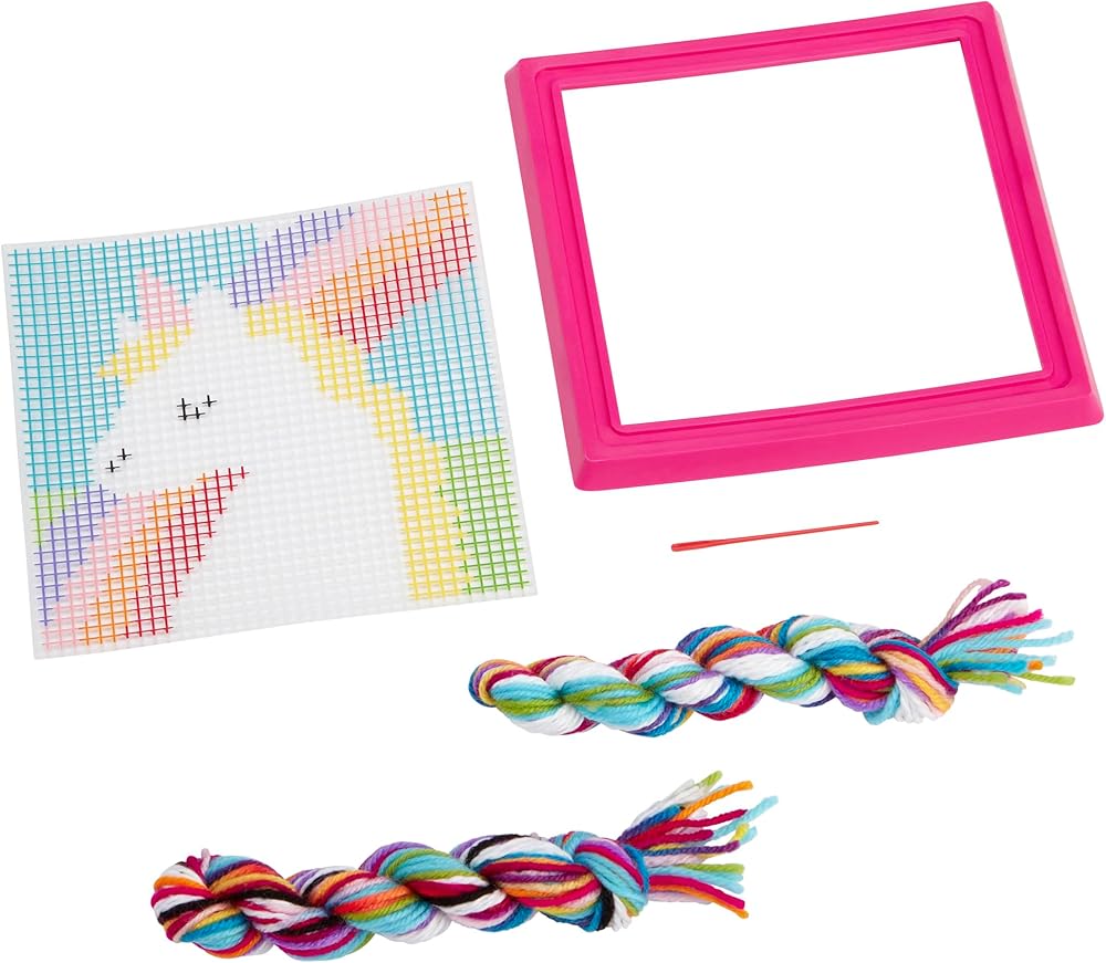 • ALL-IN-ONE KIT: Includes printed mesh, plastic needle, colorful yarn, plastic frame and easy to follow instructions.