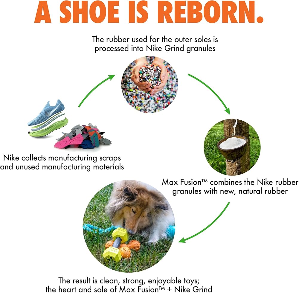 🌱 All-Natural Rubber + Nike: يجمع بين المطاط النظيف من باطن أحذية رياضية من قصاصات تصنيع Nike والمواد غير المستخدمة مع المطاط الطبيعي النقي ، الذي يتم حصاده من أشجار Hevea Brasiliensis صحية. النتائج هي ألعاب BPA و Phthalate مجانية وغير سامة وممتعة تجسد روح الحيوانات الأليفة النشطة وتطابق شغفهم باللعب!
