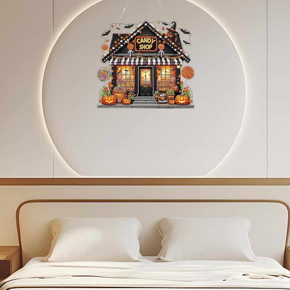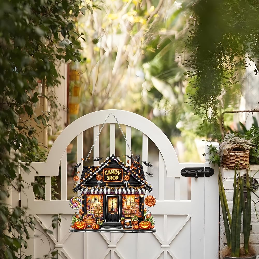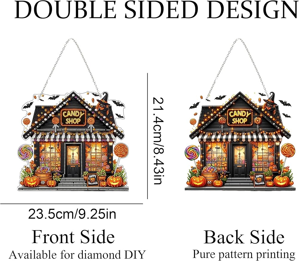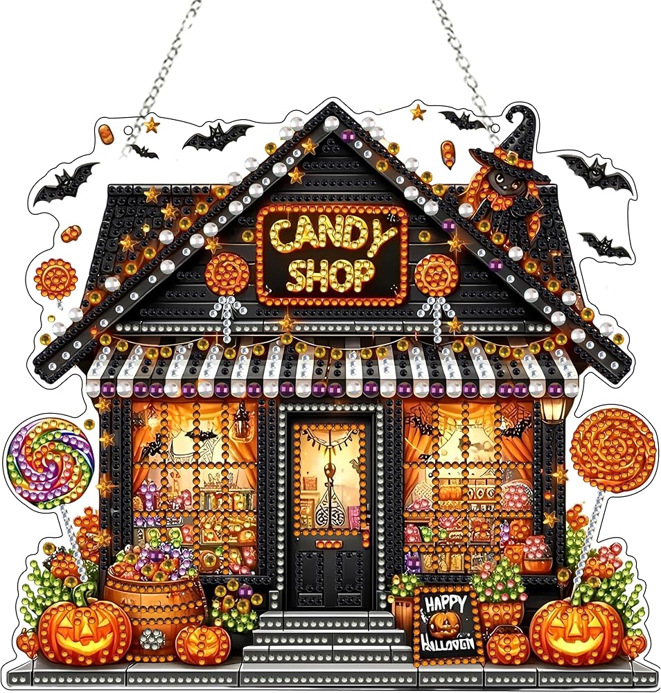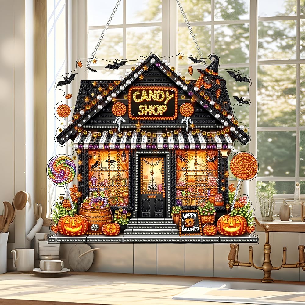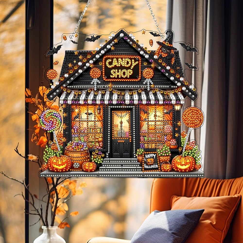 JJfox Diamond Art Att Kit للبالغين ، وحجر الراين الخاص بالبالغين ، و DIY أكريليك الماس للفنون النافذة المعلقات منزل حديقة الجدار معلقة زخرفة (منزل الحلوى)