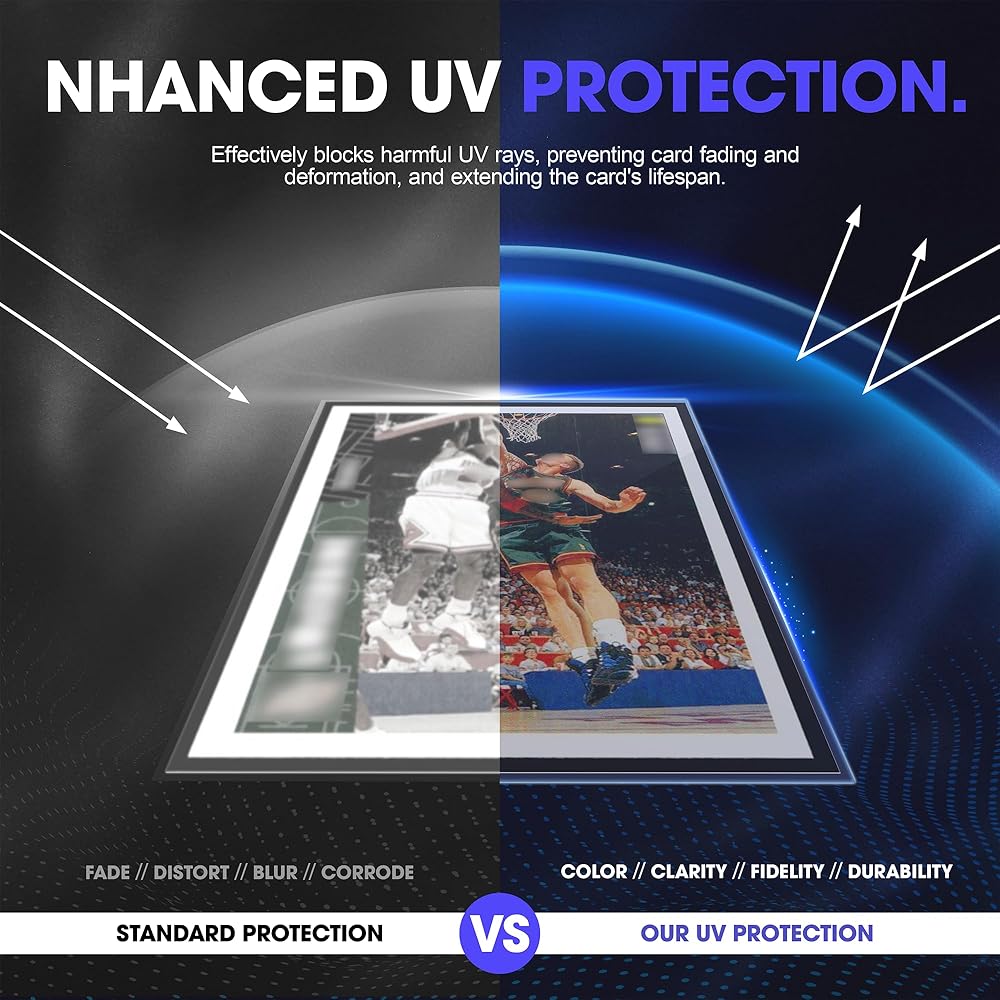 الحماية المتفوقة والحفاظ على القيمة: يوفر البناء البلاستيكي الصلب مقاومة ممتازة للانحناء والتجنب والأضرار العامة. يساعد على حماية البطاقات الخاصة بك من الرطوبة ، وبصمات الأصابع ، والأشعة فوق البنفسجية-عن طريق التخزين على المدى الطويل والاستخدام على الأطراف.