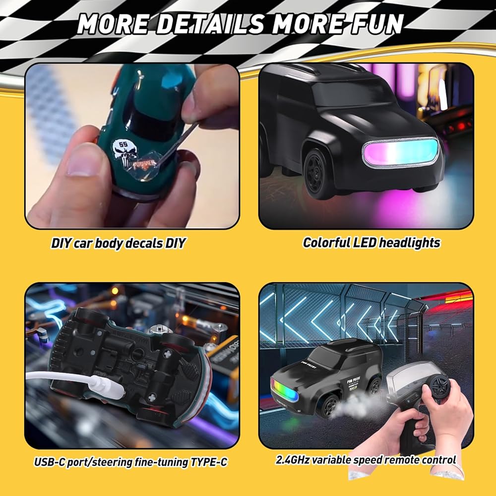 • خفيفة الوزن لأي مغامرة: 1:64 مقياس 1:64 Mini RC Car تتناسب داخل حجرة التخزين المدمجة في جهاز التحكم عن بُعد. لا توجد قيود على المكان ، يمكنك بدء سباق سباق مثير في أي مكان ، حتى على مكتبك.