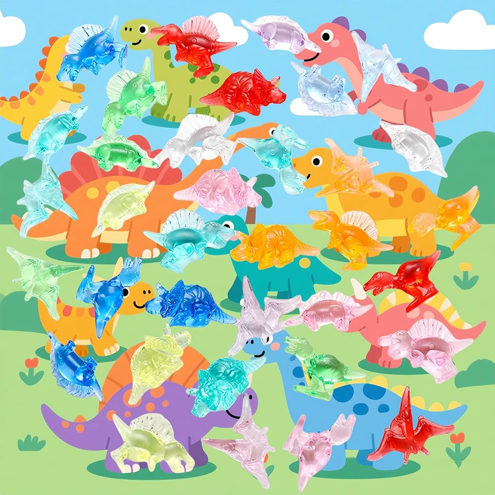 مجموعة أرقام الديناصورات المصغرة ، حوالي 90 صورة ملونة من الحلي الدينو الشفافة الشفافة للحساسية ، وصناديق الكنوز ، وجوائز الفصول الدراسية وحشو المزهرية