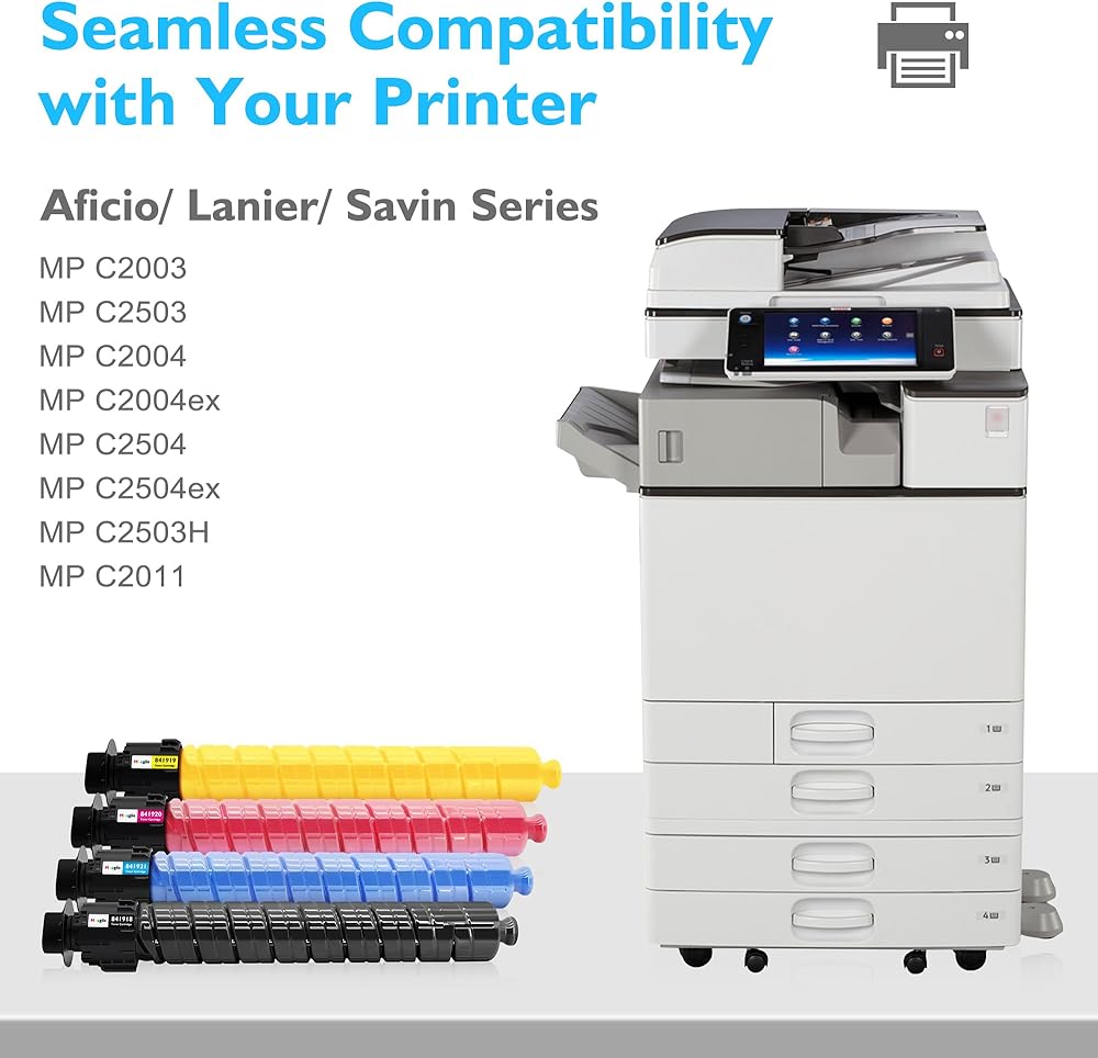 ✅【 محتويات الحزمة】: استبدال 4 عبوات لـ RICOH MP C2003 MP C2503 خرطوشة الحبر مع رقائق ذكية مطورة ، بما في ذلك 1x أسود ، 1 × سماوي ، 1 × ماجنة ، 1 × أصفر.