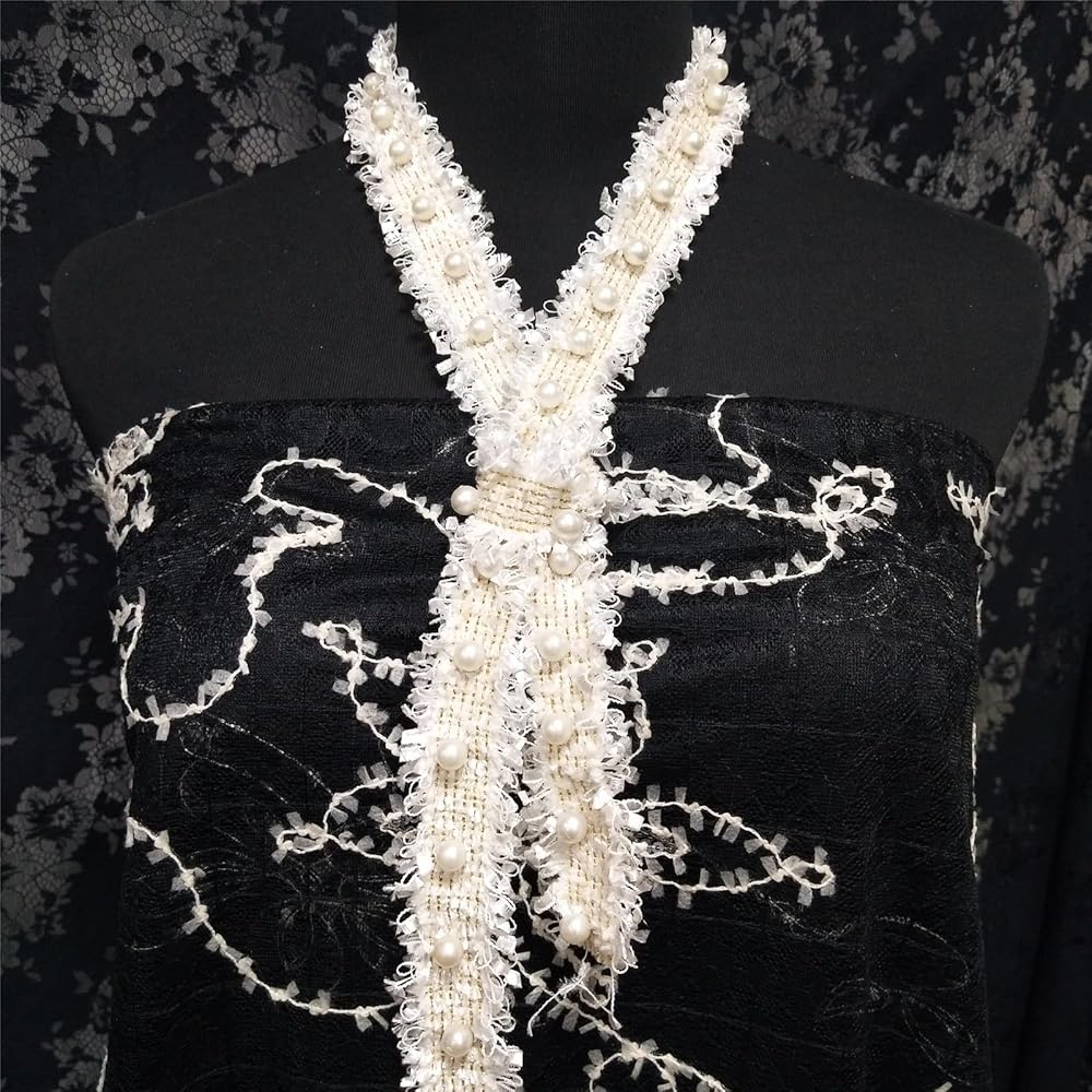 Pearl Lace Trim Attaches Pearls To High-Quality Netting Or Fabric, Creating a Beautiful And Luxurious Look. Use It To Accent Your Clothing Or Diy Accessories To Make You Stand Out In a Crowd.