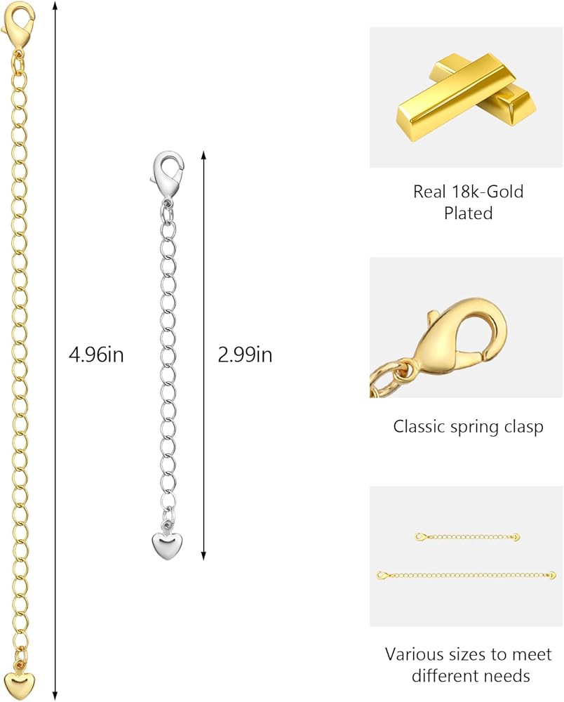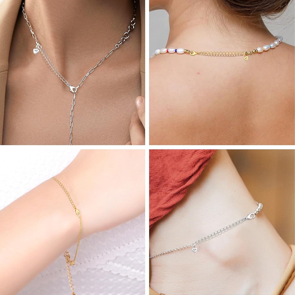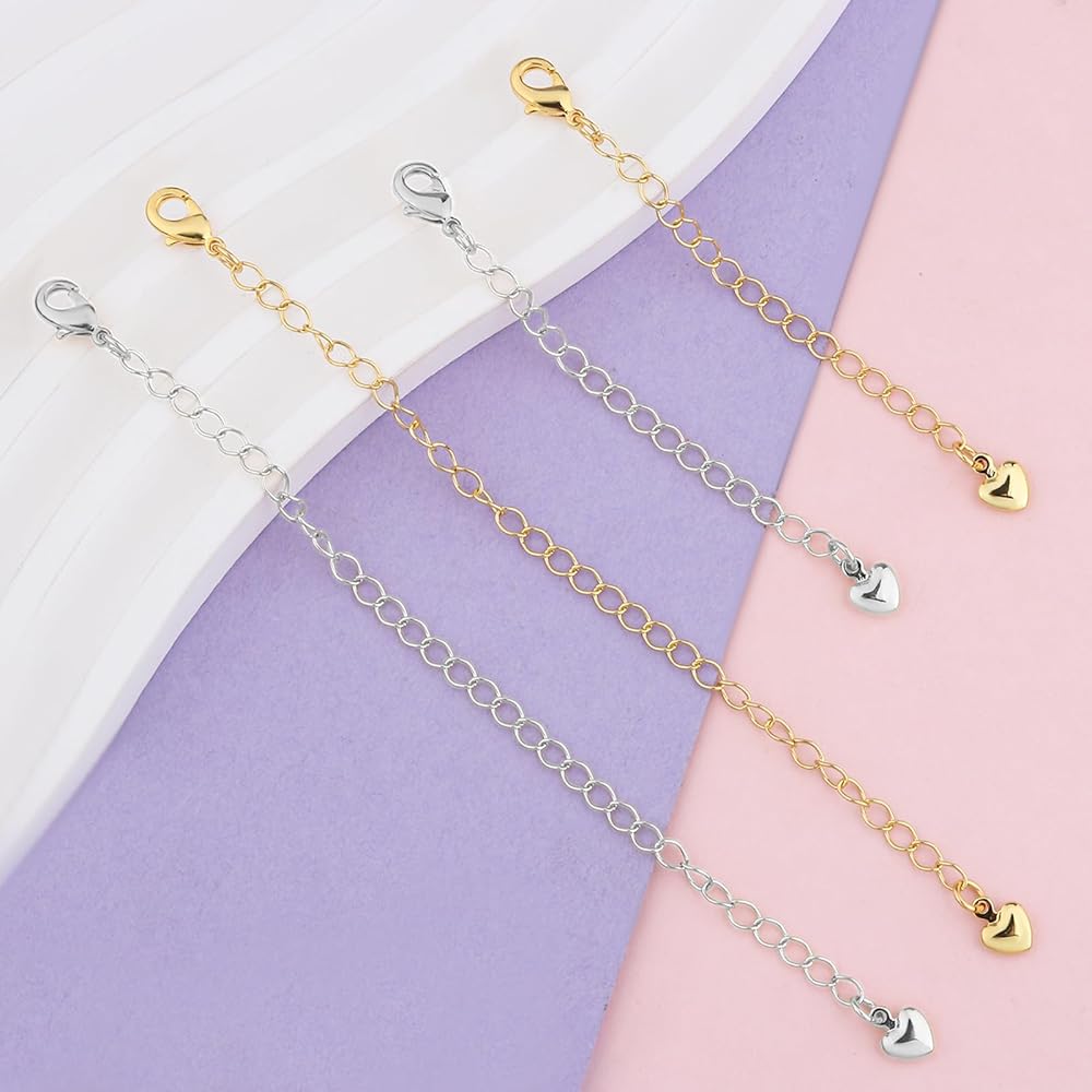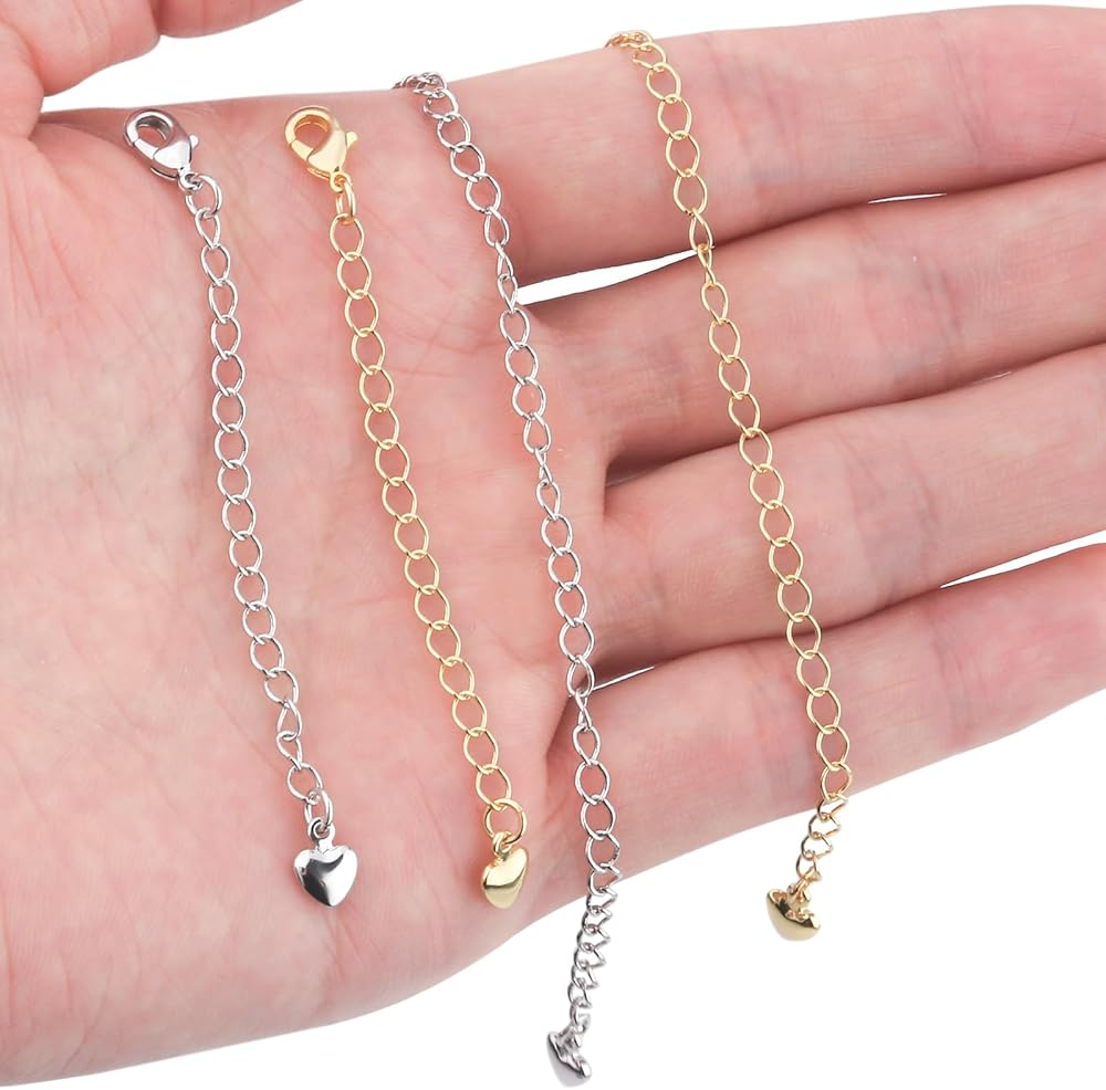 Delicate Size: The necklace extender chain is lobster clasp matched with peach heart shape, different length is 2 inch and 4 inch .The extension chain is suitable for connecting with many kinds of jewelry, which is to extend the necklace and bracelets length.