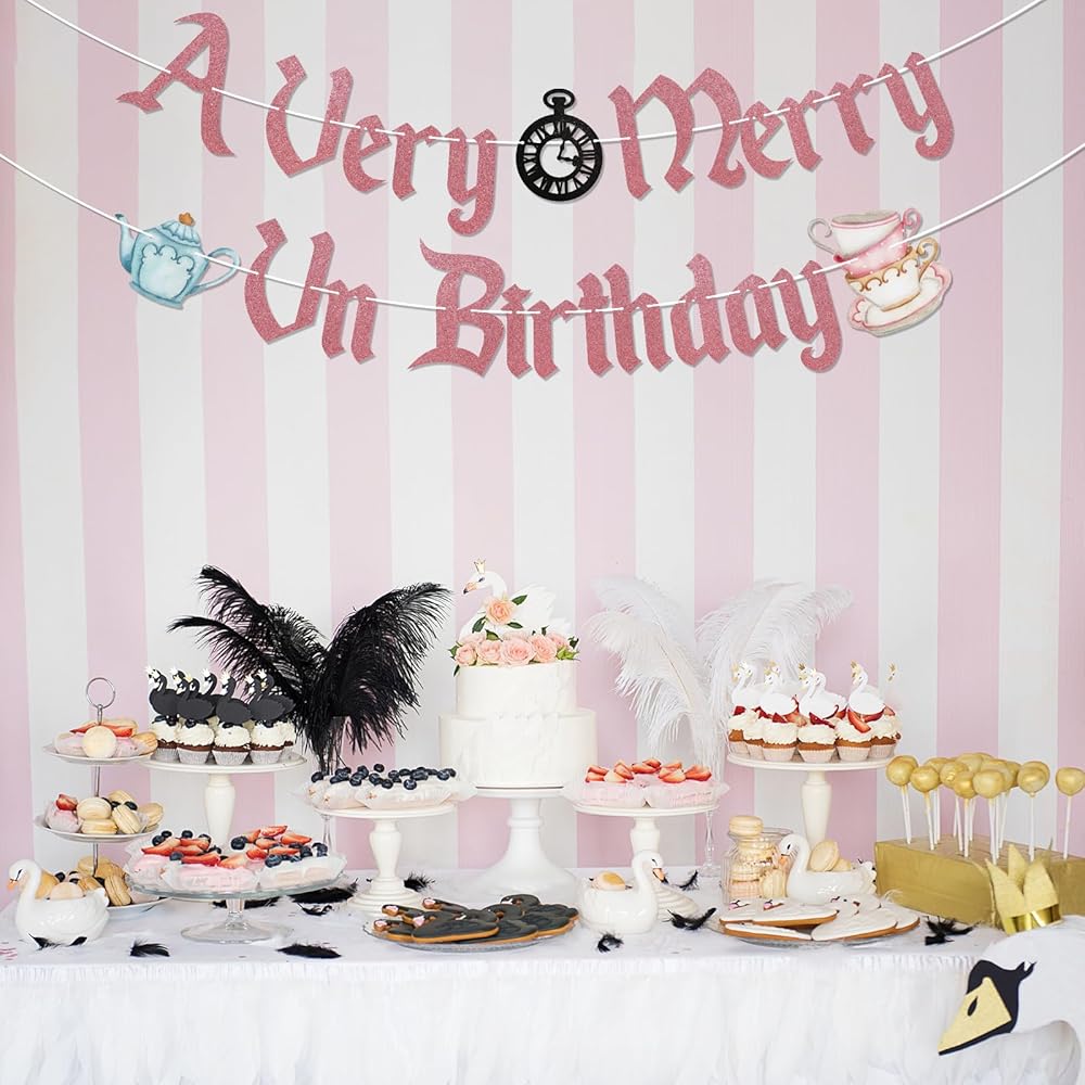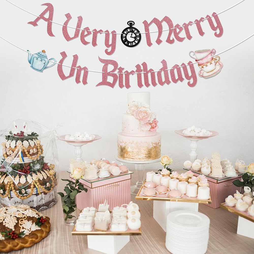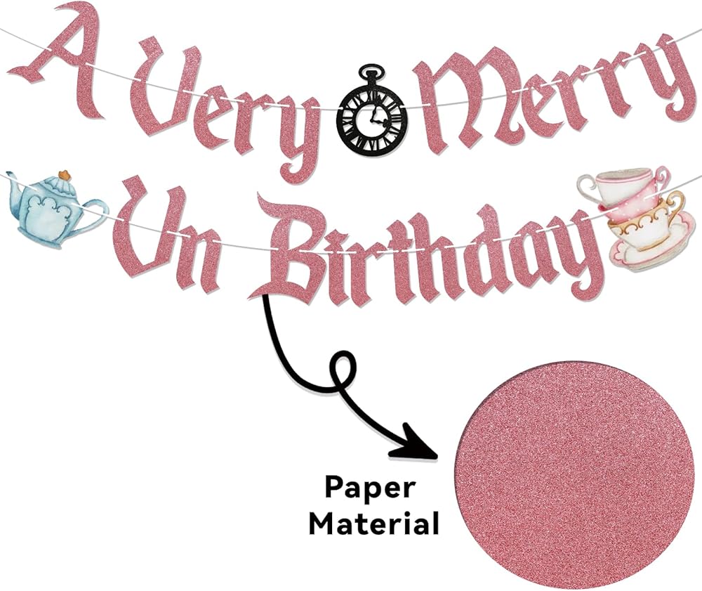 UNIQUE DESIGN - our banners are made from beautiful glitter paper, ensuring that our A Very Merry UnBirthday banners are of the highest quality and stand out, and will also make your wonderland birthday party unique, which will be a great addition to your girls party!