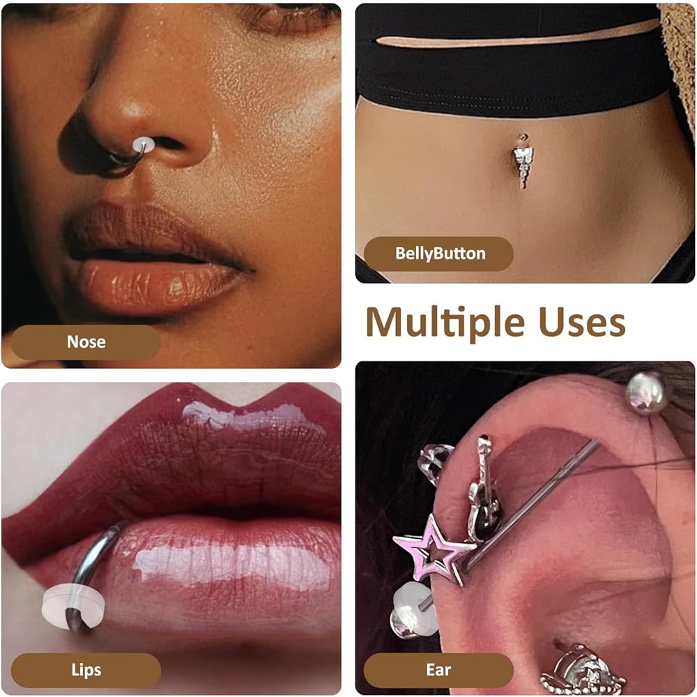 Keep your piercings happy and healthy with our 200-piece silicone earring back set! Designed for both new and healed piercings, these clear discs act as a cushion between your skin and jewelry to prevent irritation, reduce pressure, and promote bump-free healing.