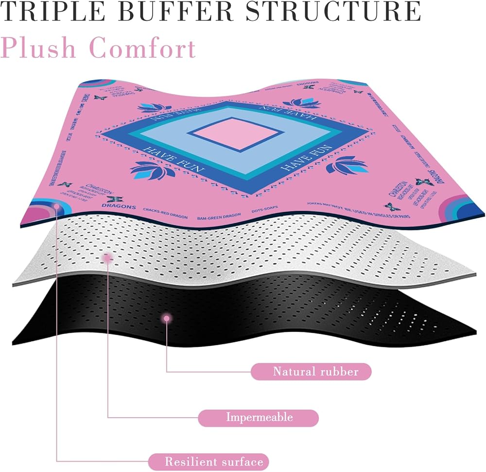 تخفيض الضوضاء ومكافحة الانزلاق: يضمن الدعم غير المنقوش غير المنحني والخياطة المتماسكة المعززة الاستقرار أثناء اللعب. يقلل من ضوضاء البلاط والتحول ، مما يجعله غطاء طاولة مهجونغ عملي للعب مركّز.