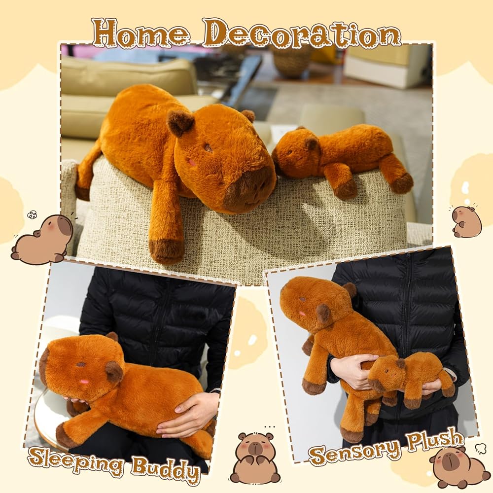 هدايا Capybara: متوفرة في حجمين - 21 بوصة (54 سم) و 10 بوصات (27 سم) - مع أوزان 1.9 رطل و 0.8 رطل على التوالي ، فإنها تلبي سيناريوهات الاستخدام المختلفة وتفضيلات الشخصية. سواء أكان وسادة احتضان أو زخرفة السرير ، فإن الحجم الأصغر مثالي لرفاقك في أي وقت وفي أي مكان ، حتى أثناء الرحلات.