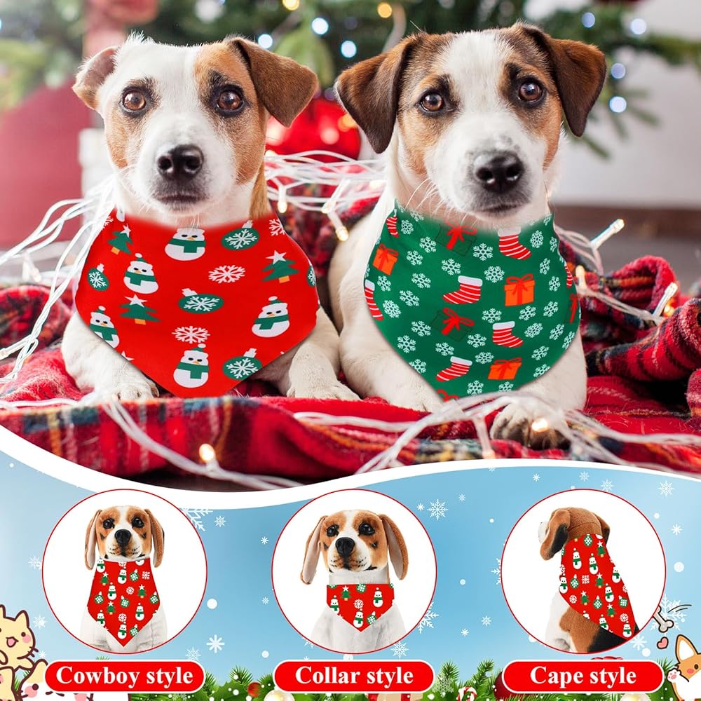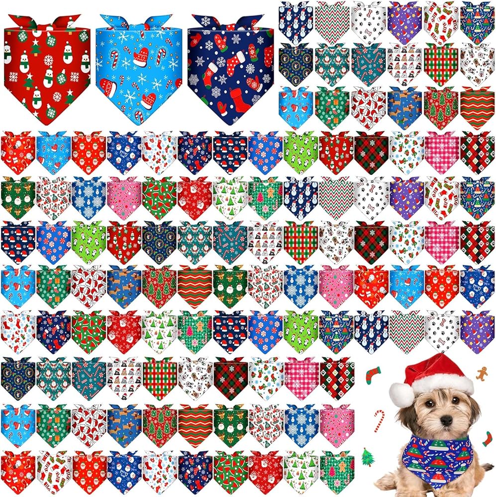 Sanwuta 120 جهاز كمبيوتر شخصي عيد الميلاد الكلب عصابات السائبة عيد الميلاد الأوشحة الحيوانات الأليفة قابل للتعديل لينة لطيف الكلب مثلث وشاح للكلاب الصغيرة المتوسطة القطط جرو كبير