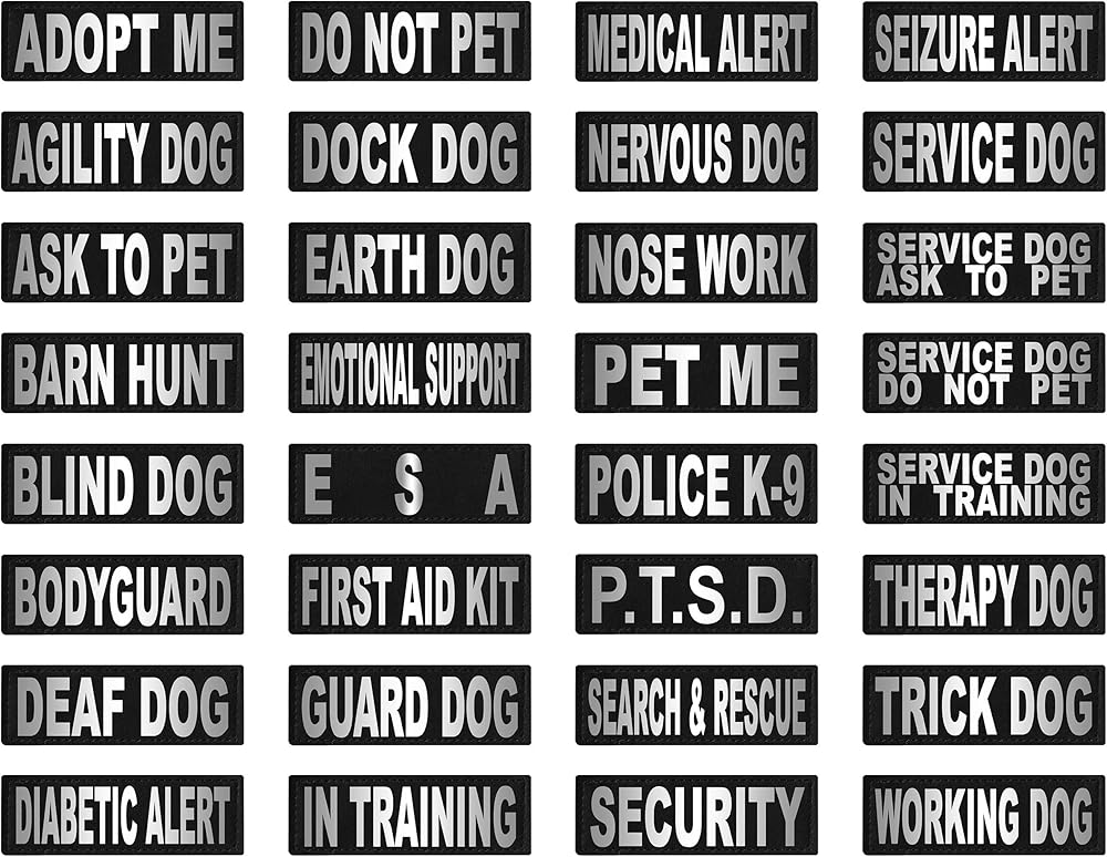 تتيح لك مجموعة من تصحيحات التعرف بوضوح على كلبك على جانبي تسخيره أو ستارته. متوفر في 1 "× 2.75" ، 1.5 "× 4" أو 2 "× 6" ، فهي تستوعب تنبيهات النوبة من جميع السلالات والأحجام. الجانب الآخر اللذيذ من التصحيح ، لا يتم توفير الجزء الناعم.