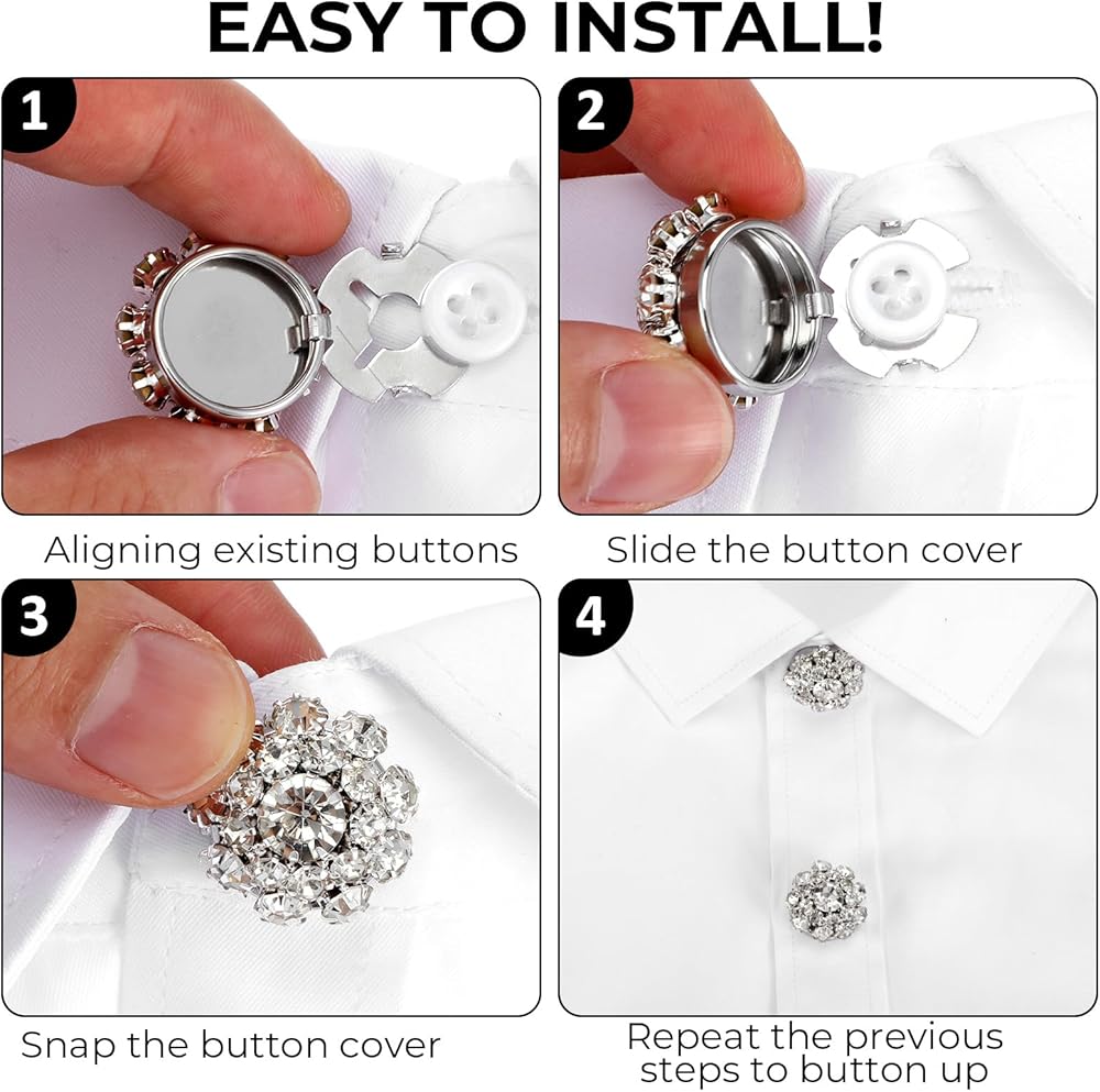 Easy to Install: This rhinestone buttons for clothing does not require sewing. Unlike traditional sewing buttons, it uses a quick and easy installation mechanism, allowing you to easily upgrade various shirt garments and meet the needs of convenience and speed.