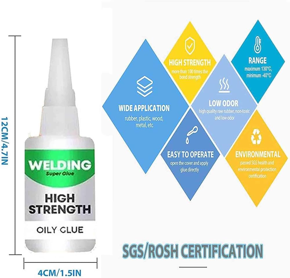 【Instant Bond】Welding High-strength Oily Glue Achieves maximum bonding strength in 8 – 10 seconds. Dries clear without strong odor.Quick and easy. Repairs like magic.