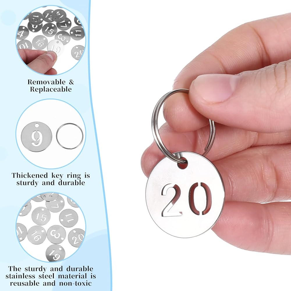 Packing list: 20pcs tags (numbers 1-20) + 20pcs key rings