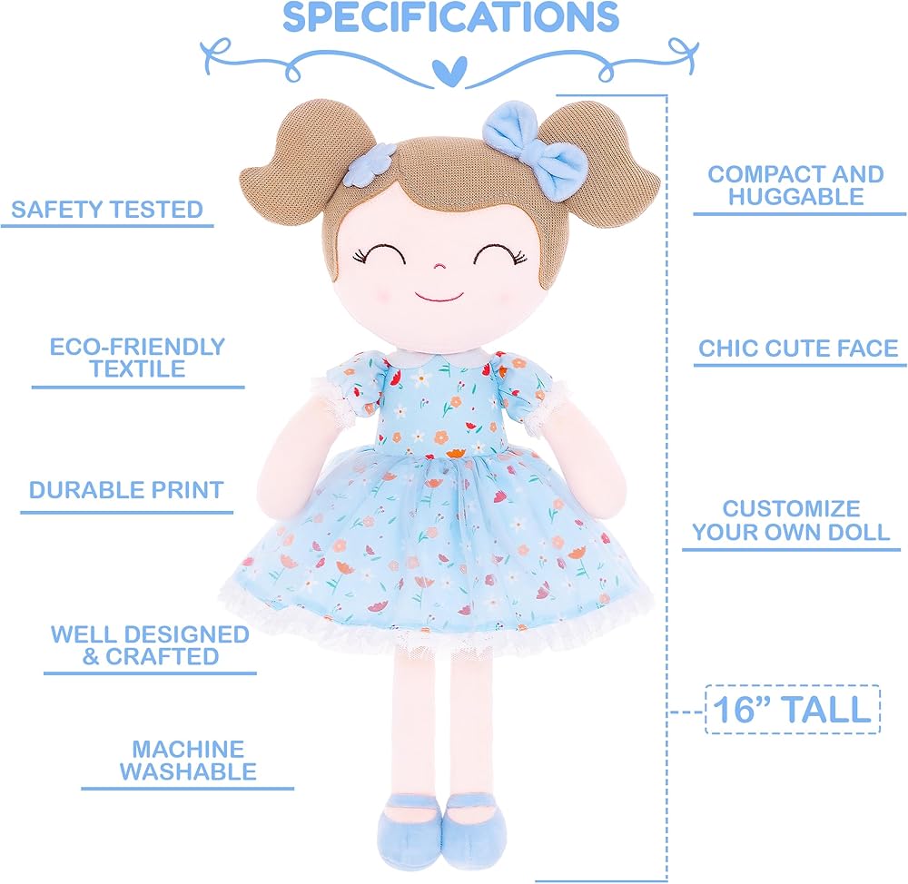 • يمكن غسل دمية الفخمة عن طريق الماكينة بالماء البارد تحت 86 درجة فهرنهايت أو يدويًا. حجم هذه الدمية 16 بوصة.