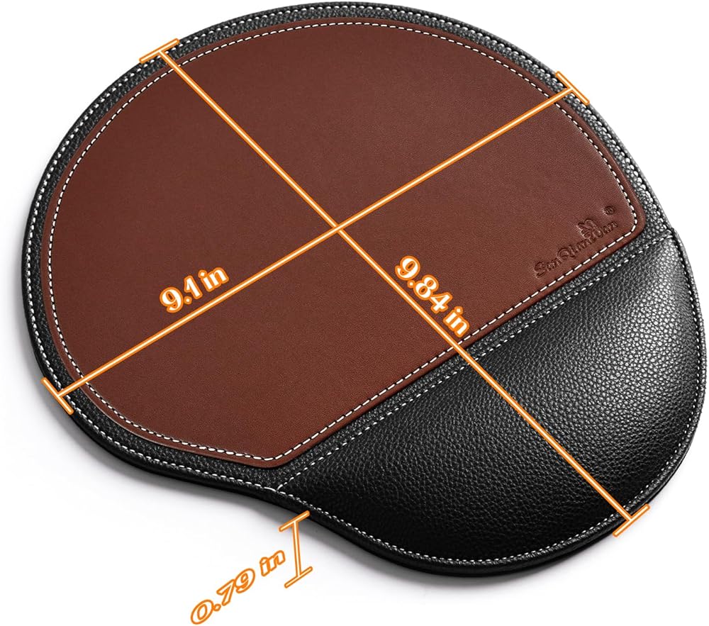 • BASIC: It is made of high-quality, non-slip PU leather material with great workmanship. There's no need to worry if you accidentally spill water or coffee on the mouse pad--just wipe it clean with a cloth or paper towels.