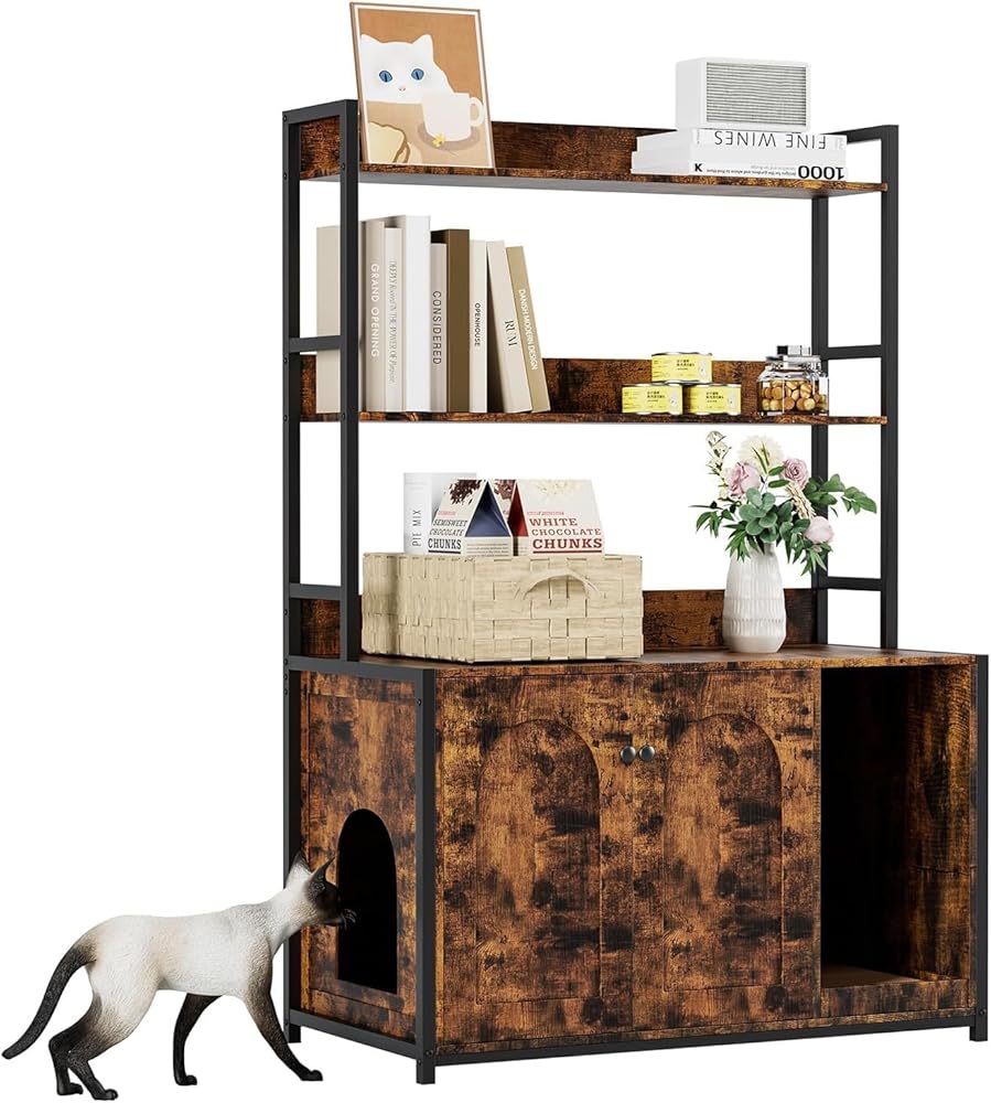 52 Inch Cat Litter Box Enclosure with Shelves, Hidden Cat Cabinet Furniture