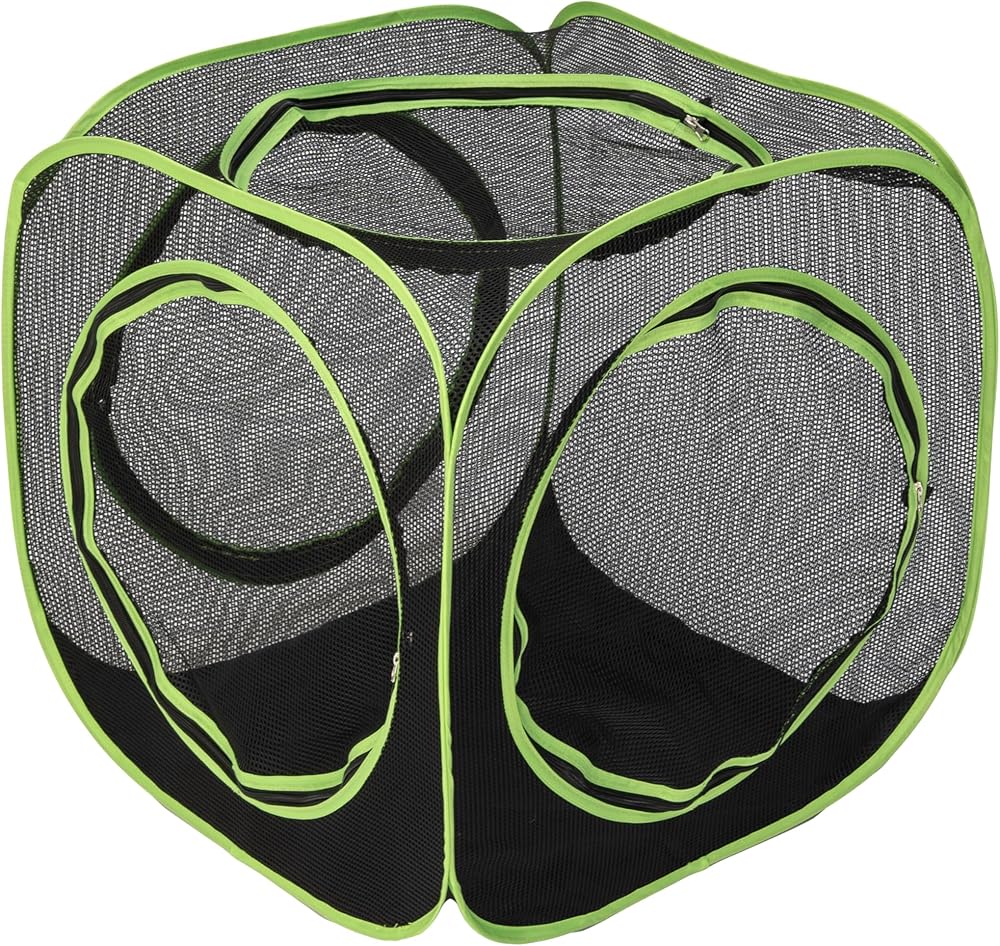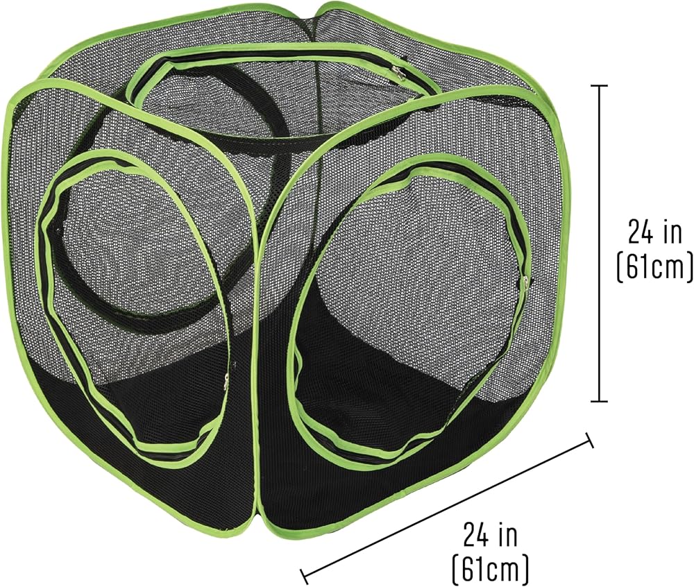 Ends of tunnel zips for safe containment and stakes to the ground for stability.