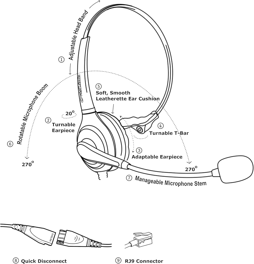 Polycom Phone Headset - متوافق مع Polycom VVX و CX و Soundpoint Series | سماعات رأس الاتصال بإلغاء الضوضاء مع RJ9 حبل فصل سريع ، ميكروفون قابل للدوار مرن