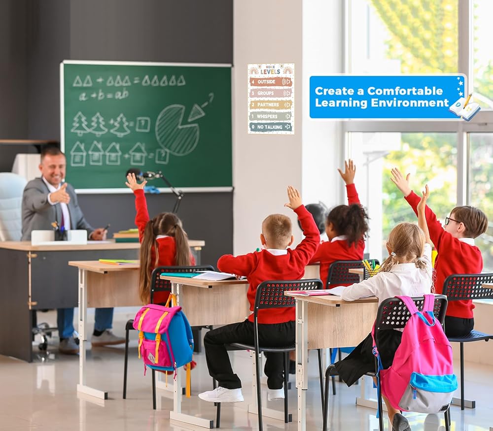 【ملصق المستوى الصوتي】: من خلال عرض مستويات الصوت المختلفة ومناسباتها المعمول بها ، يشجع ملصق تزيين الفصول الدراسية هذا الطلاب على استخدام المستويات الصوتية المناسبة للأنشطة المختلفة. يساعد ملصق جهاز مراقبة مستوى الضوضاء في إنشاء بيئة تعليمية مركزة ومحترمة حيث يمكن للجميع التواصل بشكل فعال. لوازم الفصول الدراسية الرائعة للمعلمين الابتدائية.