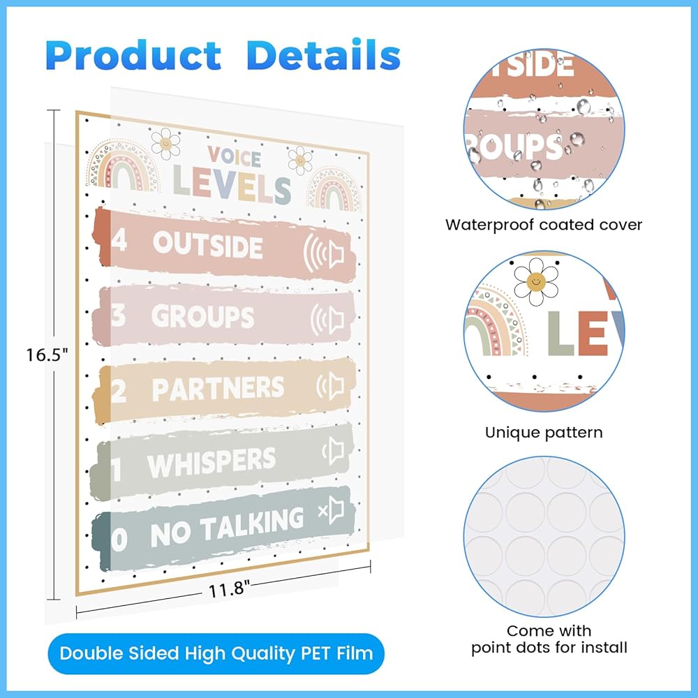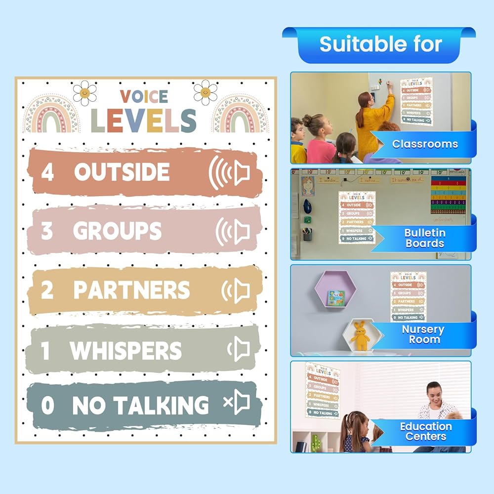 【مخطط مستوى الصوت الرائع للفصول الدراسية】: سوف تتلقى ملصق المستوى الصوتي هذا للزخارف الفصول الدراسية ، ويبلغ قياسه حوالي 16.5 × 11.8 بوصة. يوفر مرجعًا بصريًا لخمس مستويات مختلفة من الصوتيات لمساعدة الطلاب على فهم متى يستخدمون كل مستوى بشكل مناسب.