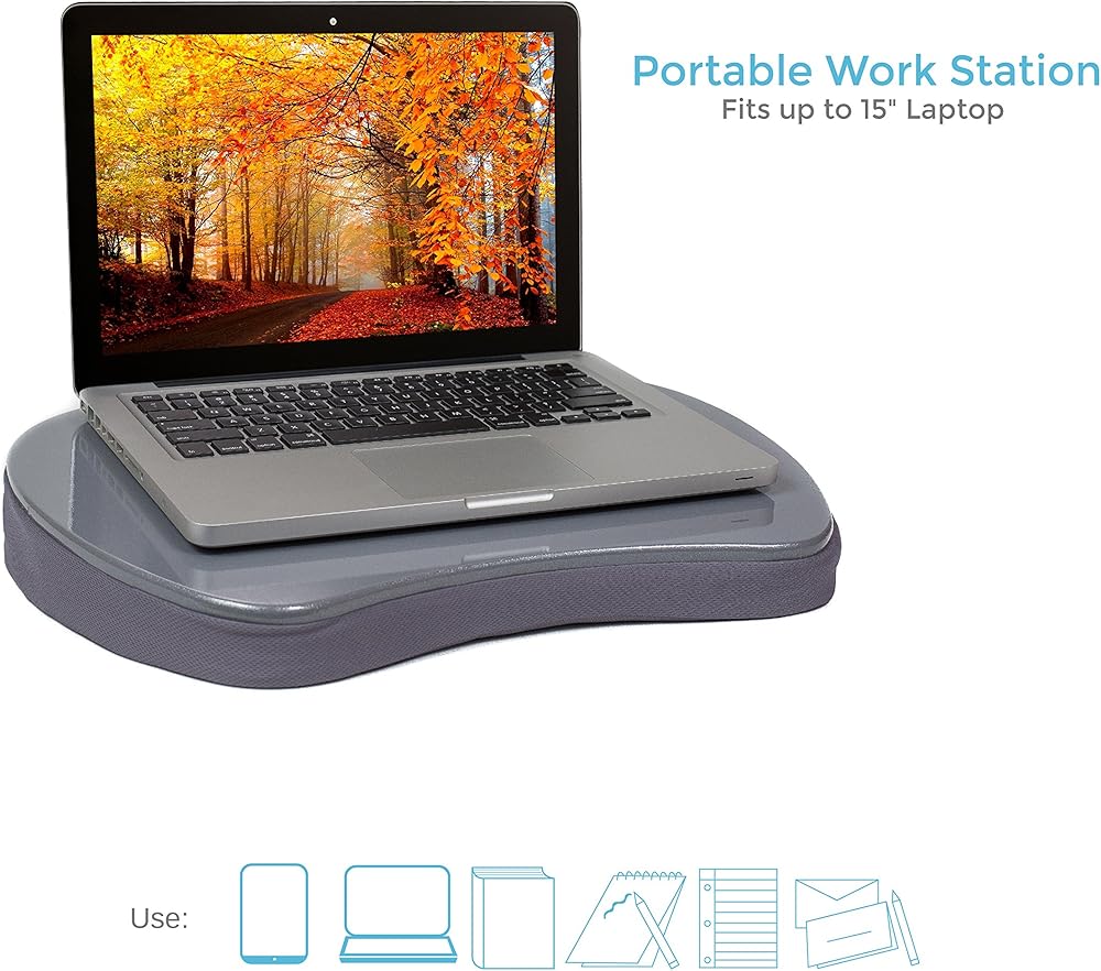 العمل من المنزل: مكتب اللفة المثالي حتى تتمكن من إنجاز العمل من راحة سريرك أو الأريكة! تتيح لك علبة اللفة استخدام الكمبيوتر المحمول بحجم 15 بوصة (أو أصغر) بشكل مريح على حضنك لفترات طويلة. علبة اللفة عبارة عن مكتب محمول يذهب إلى أي مكان تريد الذهاب إليه. استخدم المقبض المدمج لنقله بسهولة إلى منطقة عملك التالية بسهولة