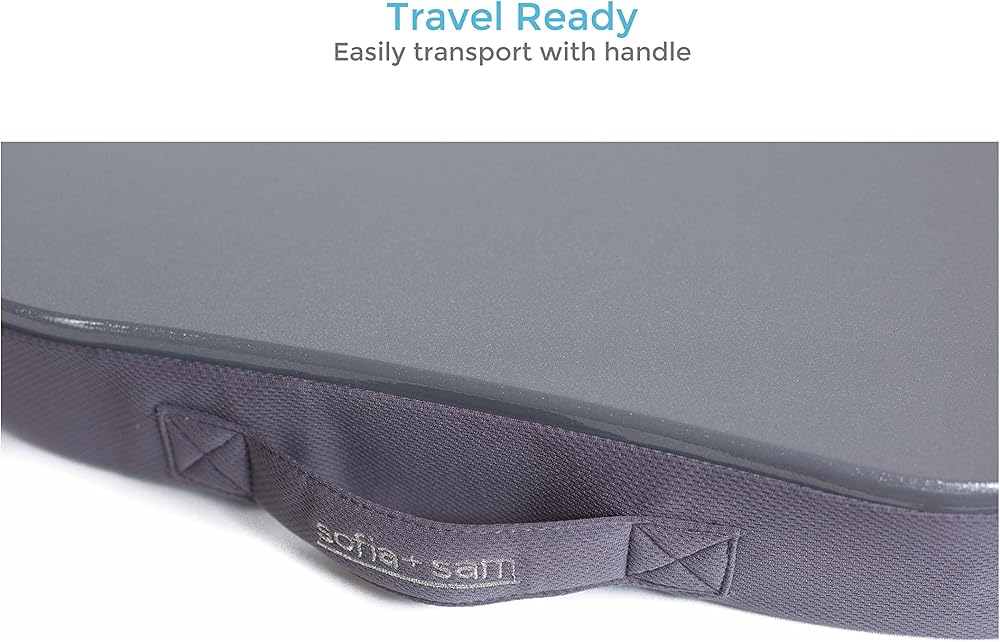 مكتب MINI المحمول Ultra: صغير ومضغوط يسمح لك بإحضار محطة العمل المحمولة أينما ذهبت. يسمح لك الحجم الصغير بتخزين مكتب اللفة أسفل/بجانب كرسيك أو الأريكة أو السرير أو في سيارتك. يتيح لك المقبض المدمج حمله دون قلق